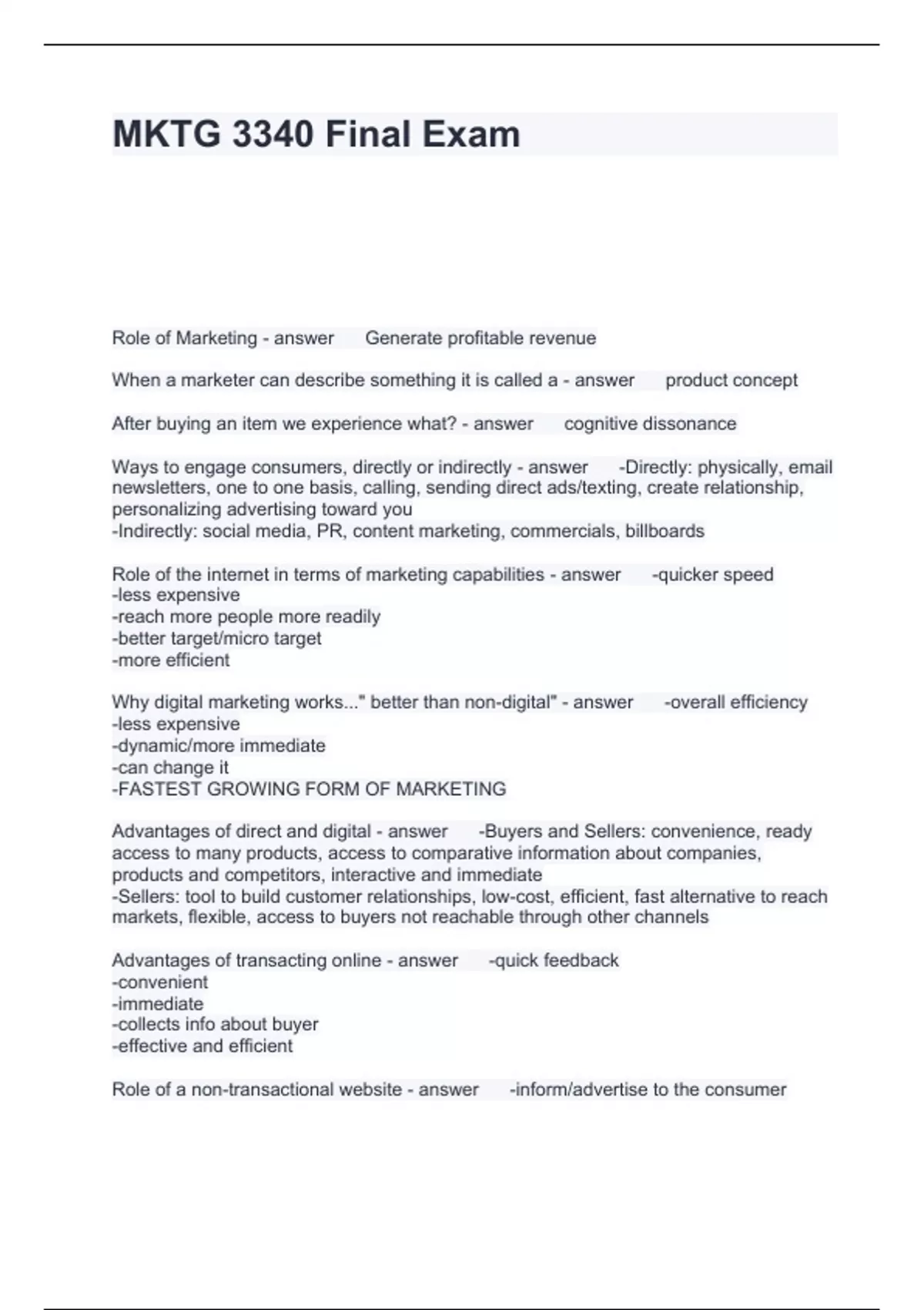 BUNDLE OF MKTG 3340 TEST READY SOLVED 2024