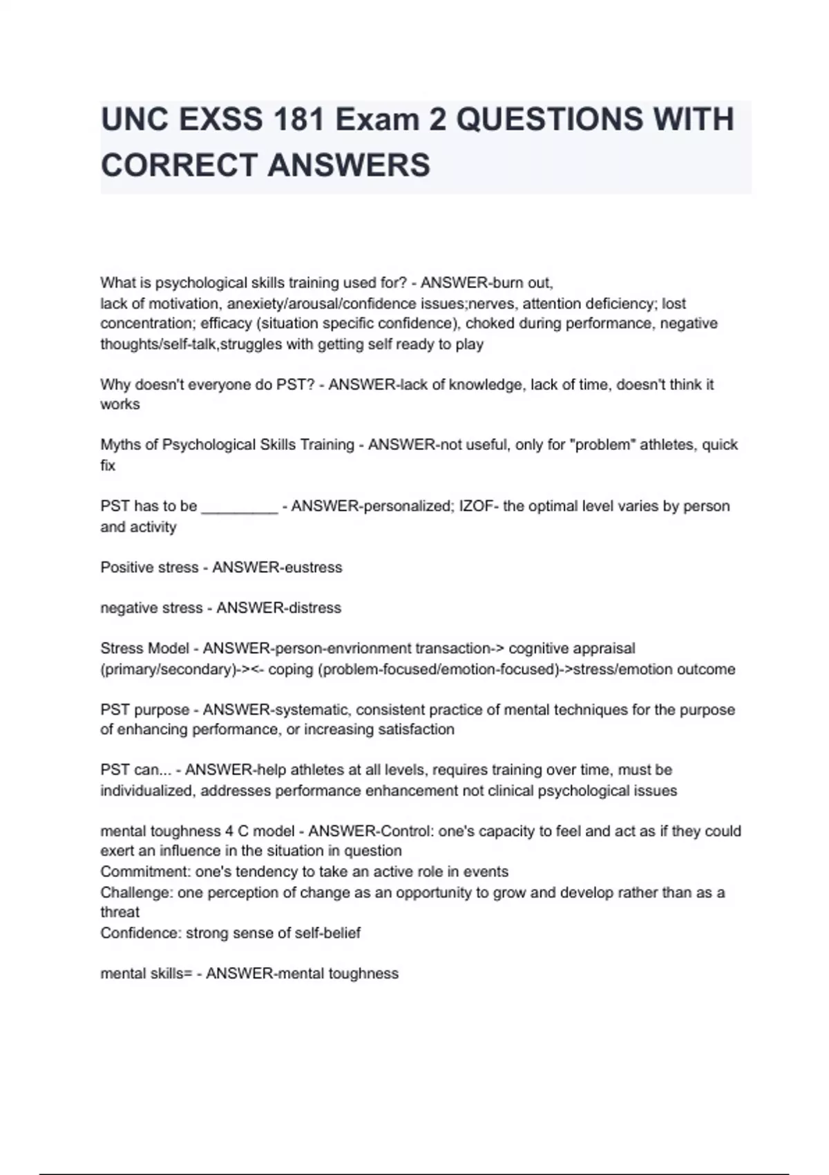 UNC EXSS 181 Exam 2 QUESTIONS WITH CORRECT ANSWERS