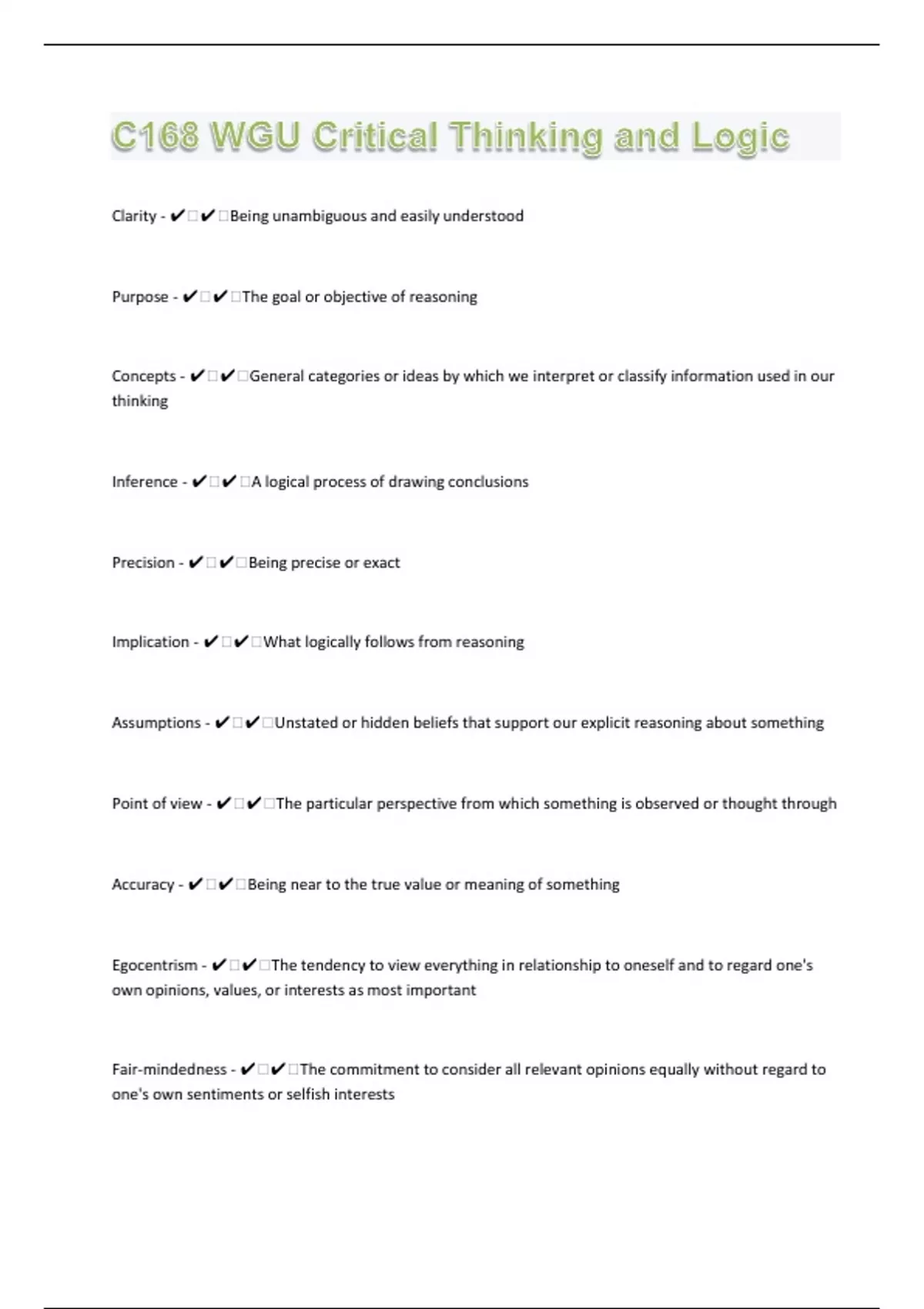 C168 WGU Critical Thinking and Logic 103 Test Question Review With Correct Answers |D0wnload to score A+