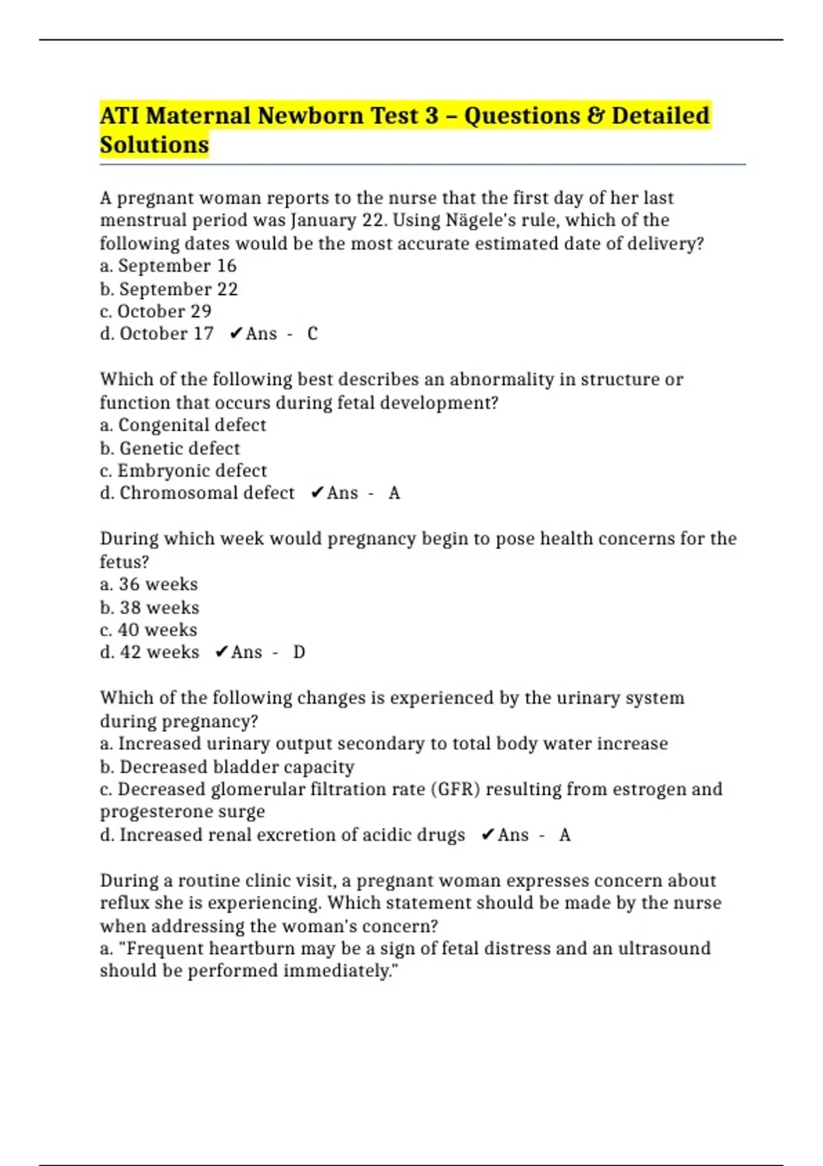 ATI Maternal Newborn Test 3 – Questions & Detailed Solutions