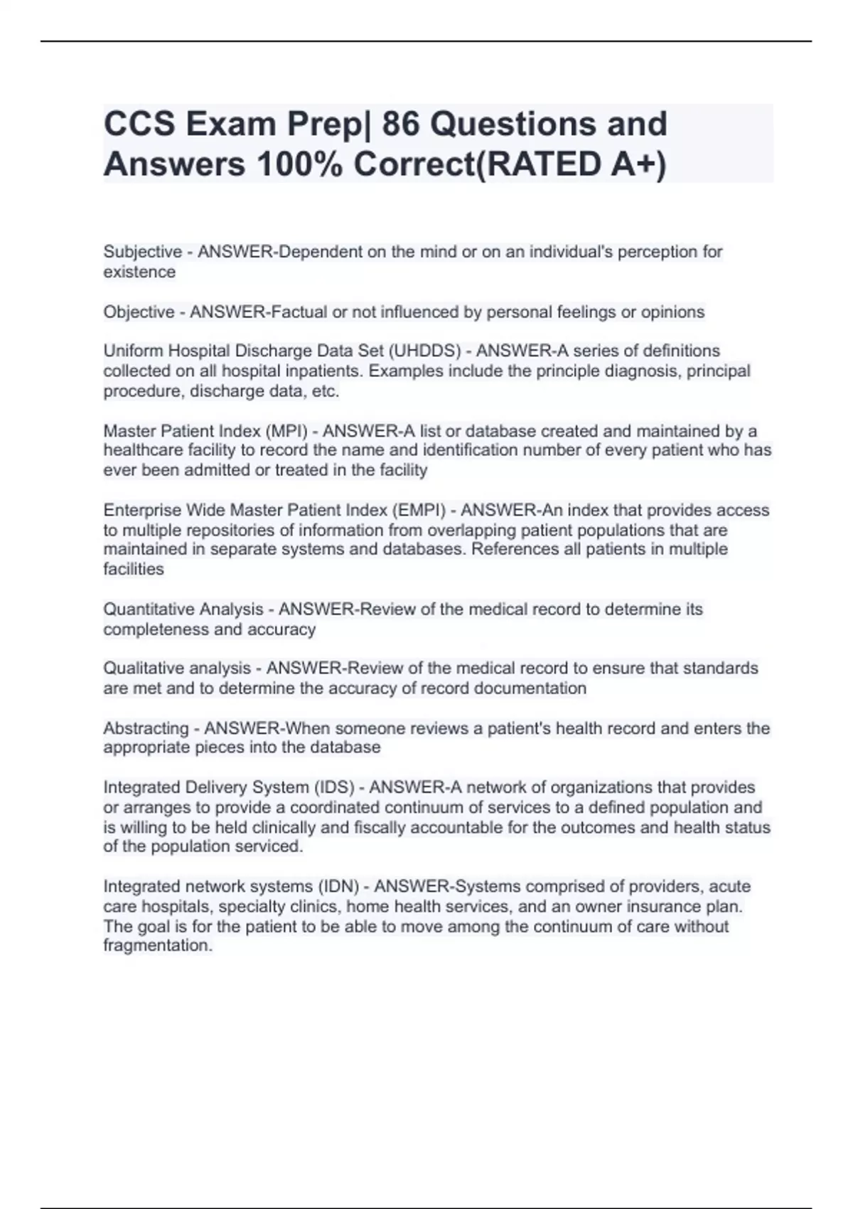 - ccs exam prep 86 stuvia