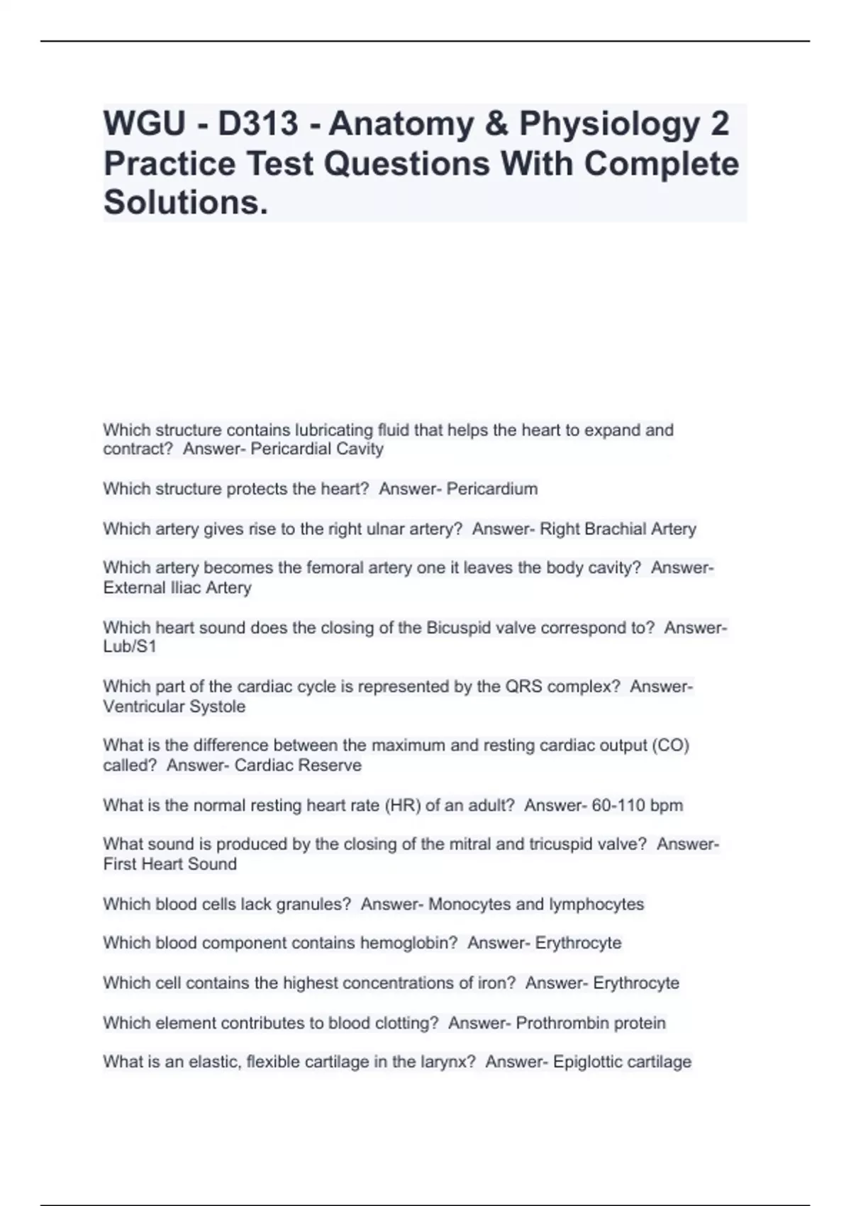 WGU - D313 - Anatomy & Physiology 2 Practice Test Questions With Complete Solutions.