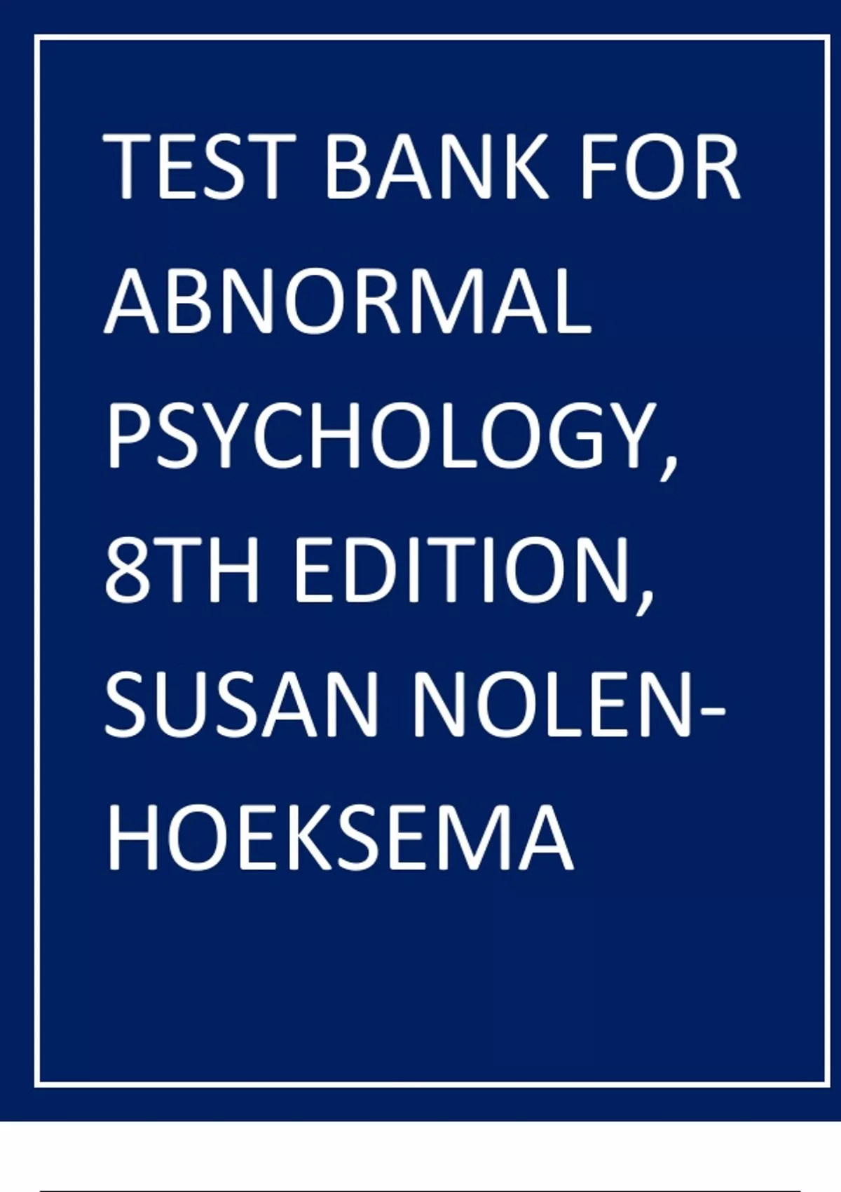 TEST BANK FOR ABNORMAL PSYCHOLOGY, 8TH EDITION, SUSAN NOLENHOEKSEM