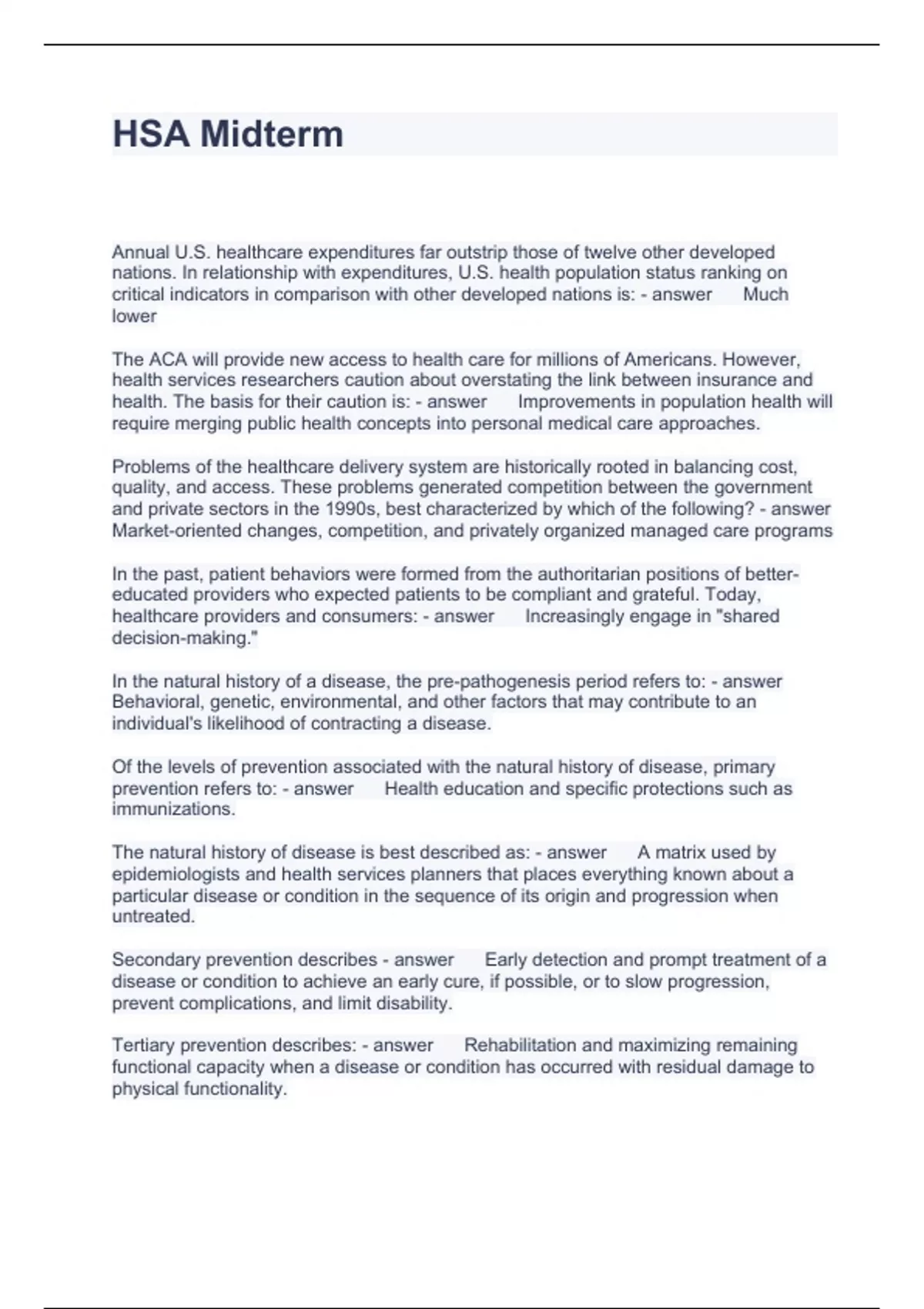 HSA Midterm