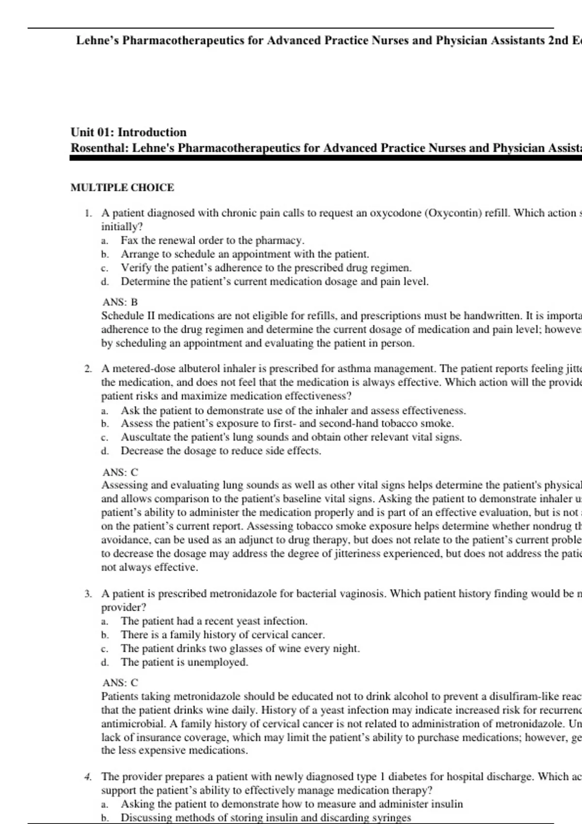 TEST BANK for LEHNE’S PHARMACOTHERAPEUTICS FOR ADVANCED PRACTICE NURSES AND PHYSICIAN ASSISTANTS 2ND EDITION ROSENTHAL latest 2024