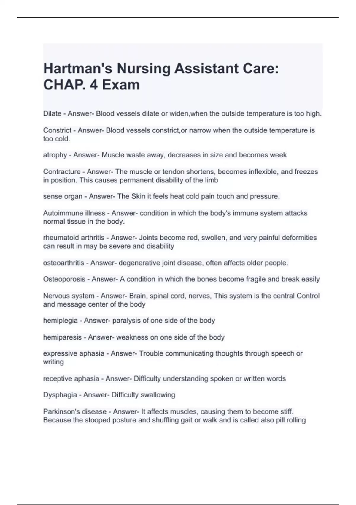 Hartman's Nursing Assistant Care CHAP. 4 Exam Questions and Answers
