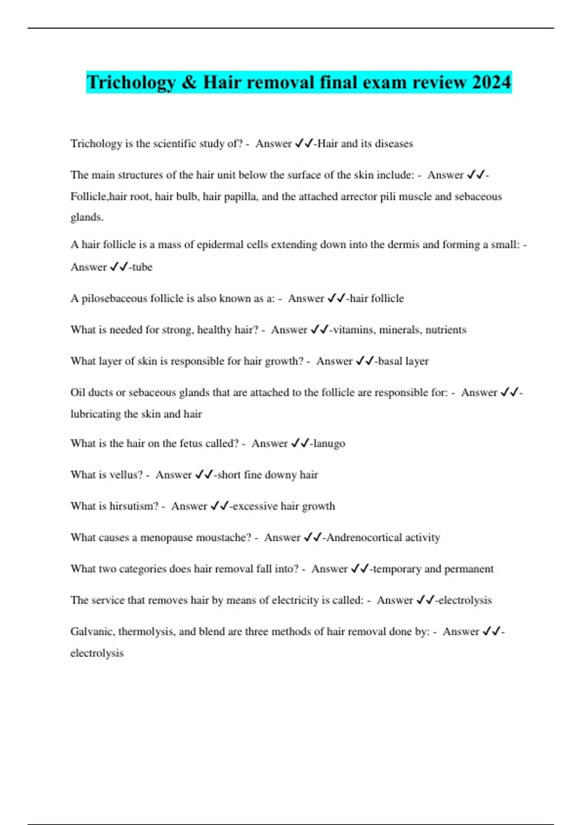 Trichology & Hair removal final exam review 2024