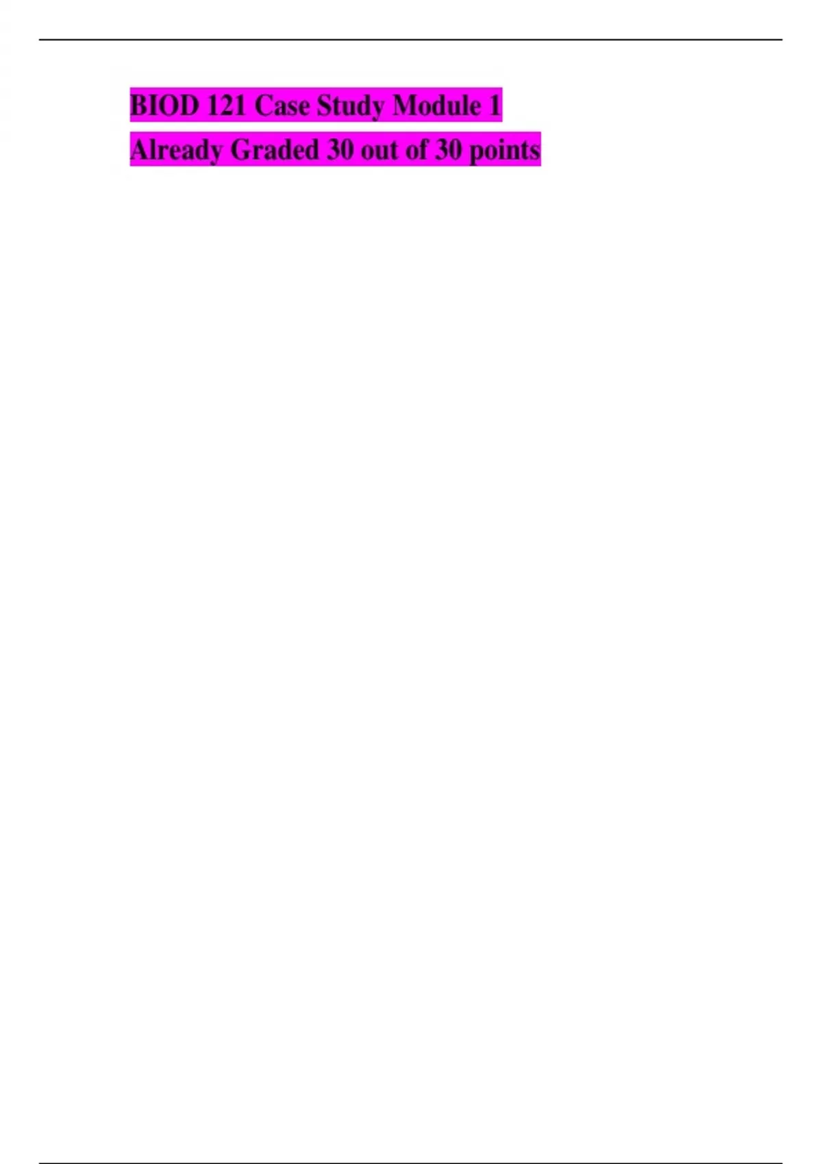 BIOD 121 Case Study Module 1 Already Graded 30 out of 30 points