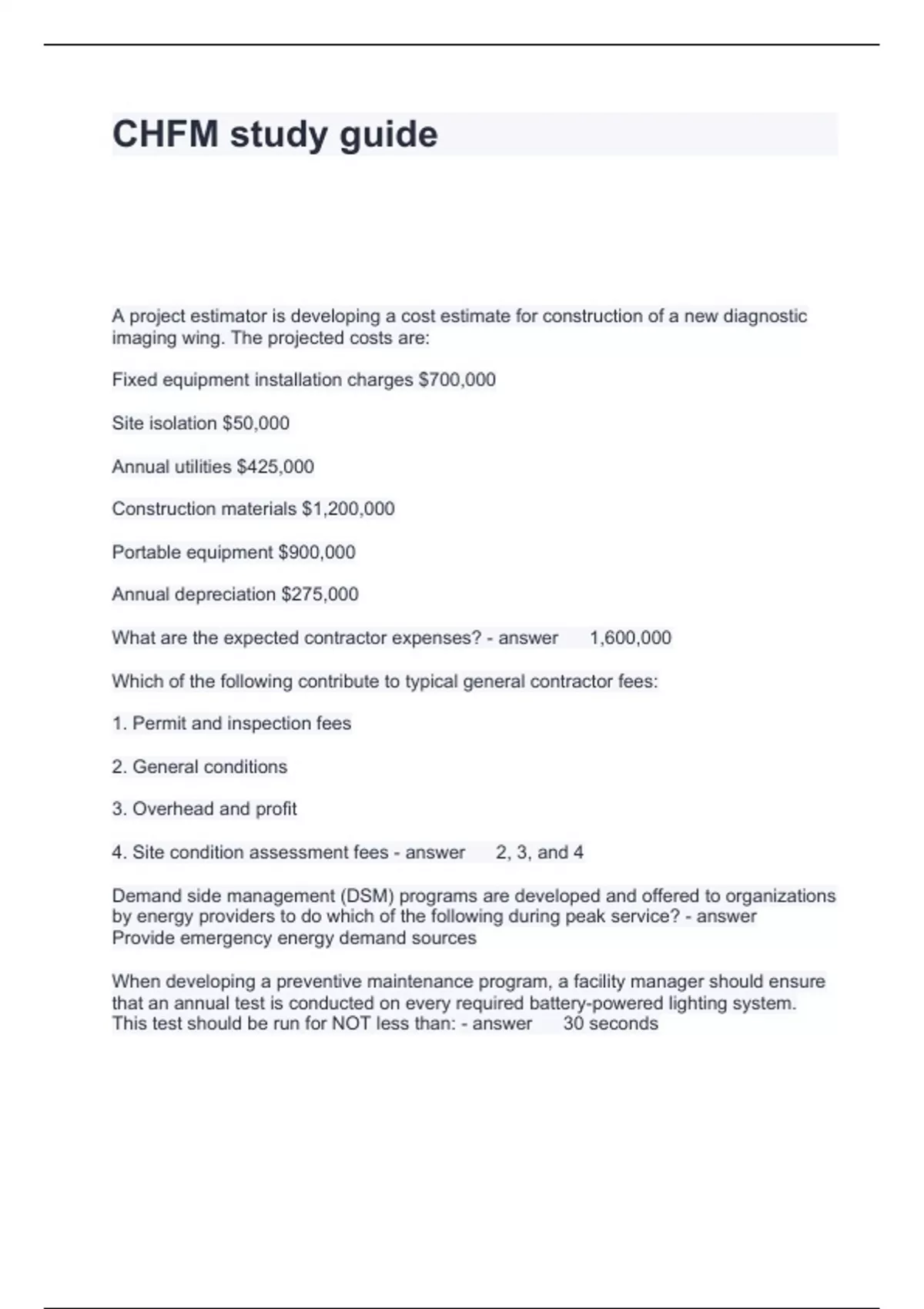 CHFM study guide Questions and Answers Latest Updated 2024