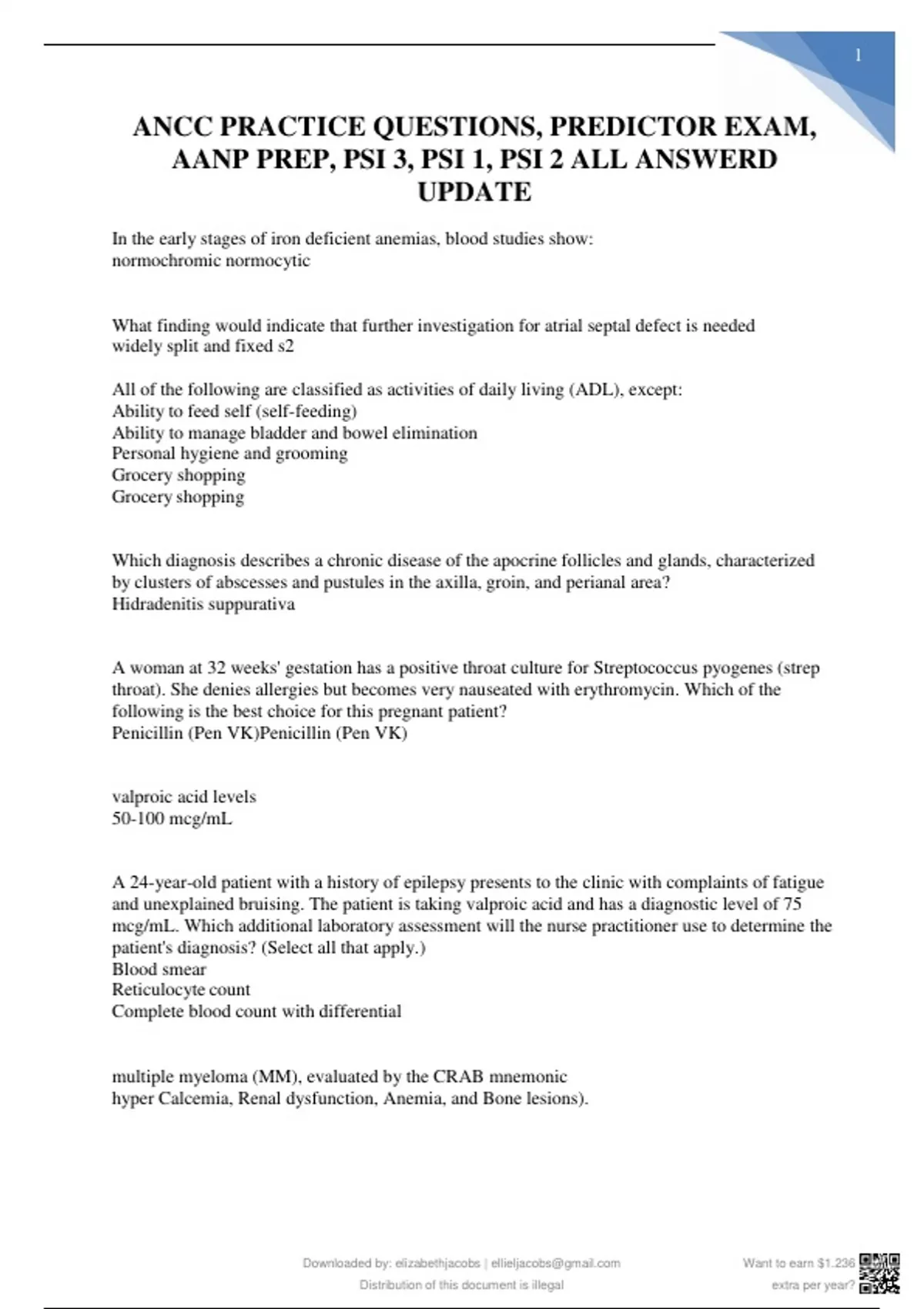 ANCC PRACTICE QUESTIONS, PREDICTOR EXAM, AANP PREP, PSI 3, PSI 1, PSI 2 ALL ANSWERD /ANCC PRACTICE QUESTIONS, PREDICTOR EXAM, AANP PREP, PSI 3, PSI 1, PSI 2 ALL ANSWERD /ANCC PRACTICE QUESTIONS, PREDICTOR EXAM, AANP PREP, PSI 3, PSI 1, PSI 2 ALL ANSWERD