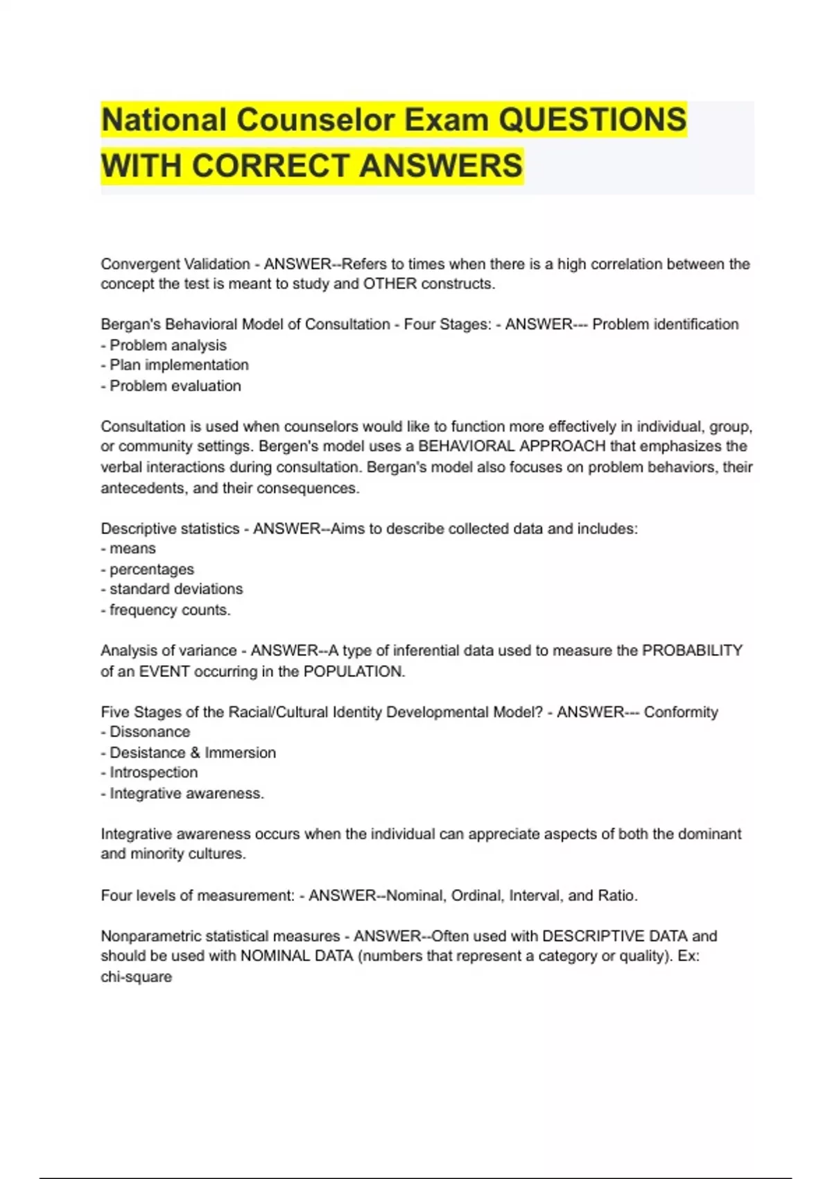 - National Counselor Exm QUETIONS WITH CORECT ANS