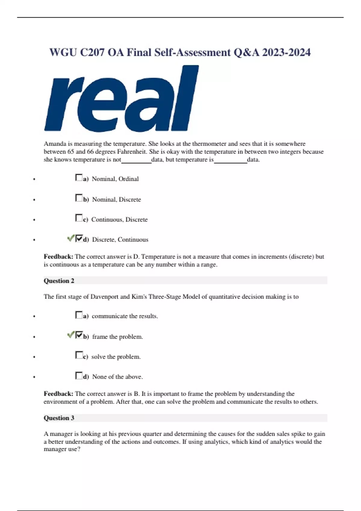 WGU C207 OA Final Self-Assessment Q&A 2023-202