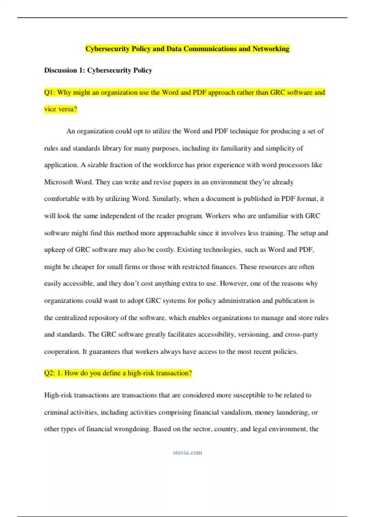 Why might an organization use the Word and PDF approach rather than GRC software and vice versa. How do you define a high-risk transaction. If you were a security professional in a company, what are four roles (two sets of two related roles) you would separate and why? Provide examples not mentioned in the description for this discussion. 1. Root name servers sit at the top of the DNS hierarchy. How many root name servers are there on the Internet? Who owns/operates the servers? Explain the role that root name servers play in the domain name resolution process. 2. Do you have any experience in network design and development? If yes, what have you learned from such experiences