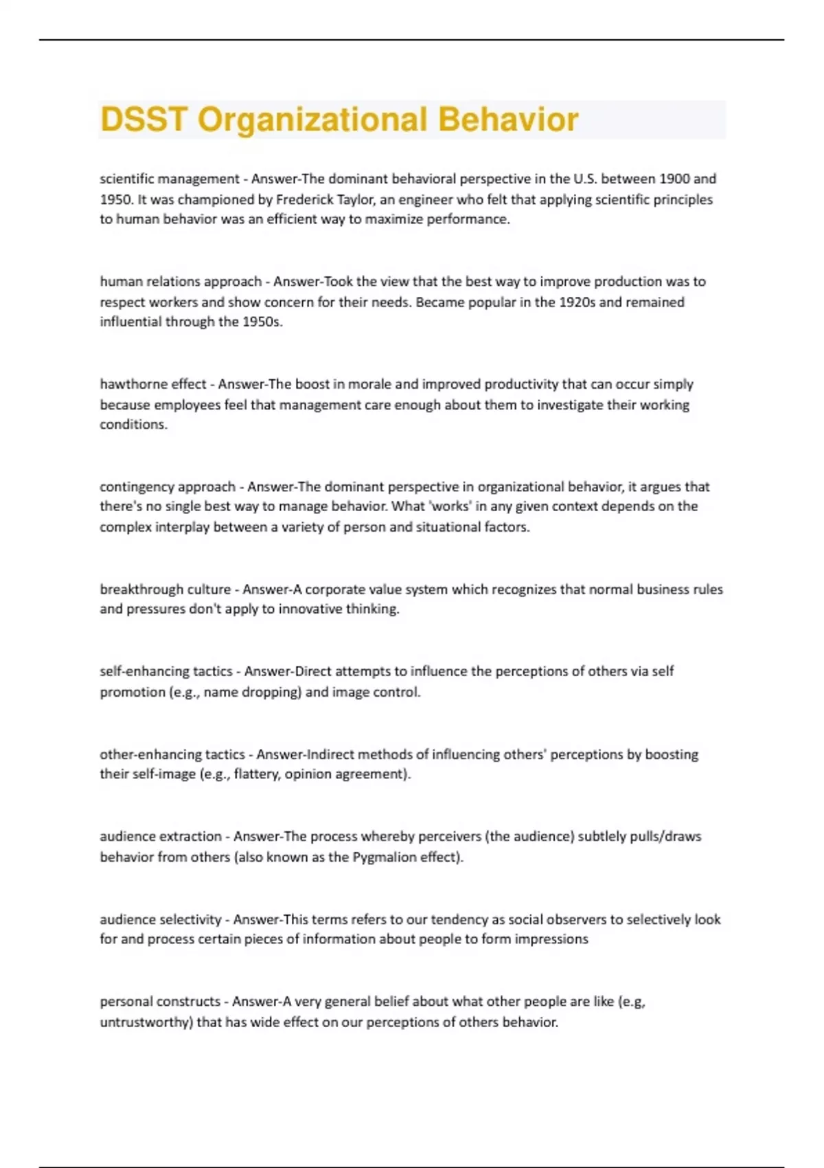 DSST Organizational Behavior