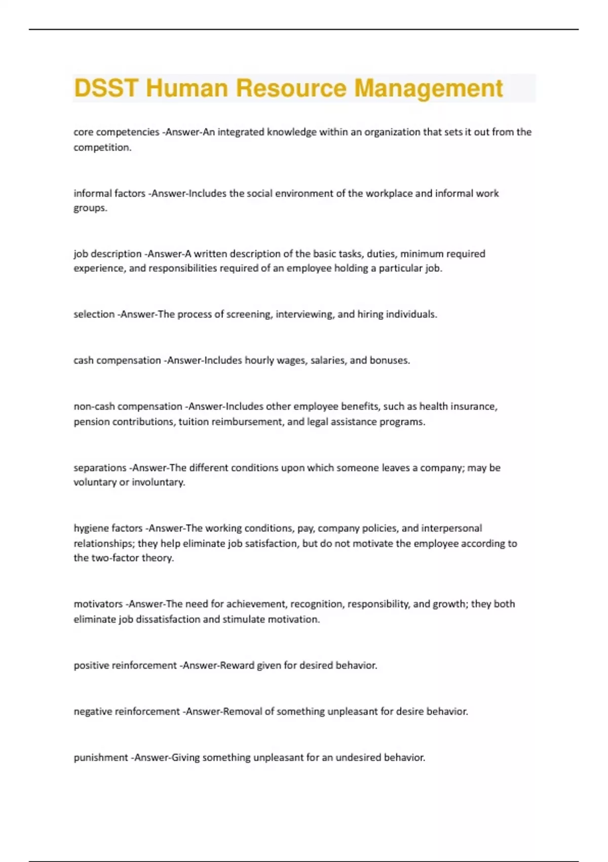 DSST Human Resource Management Questions and Answers(A+ Solution guide)