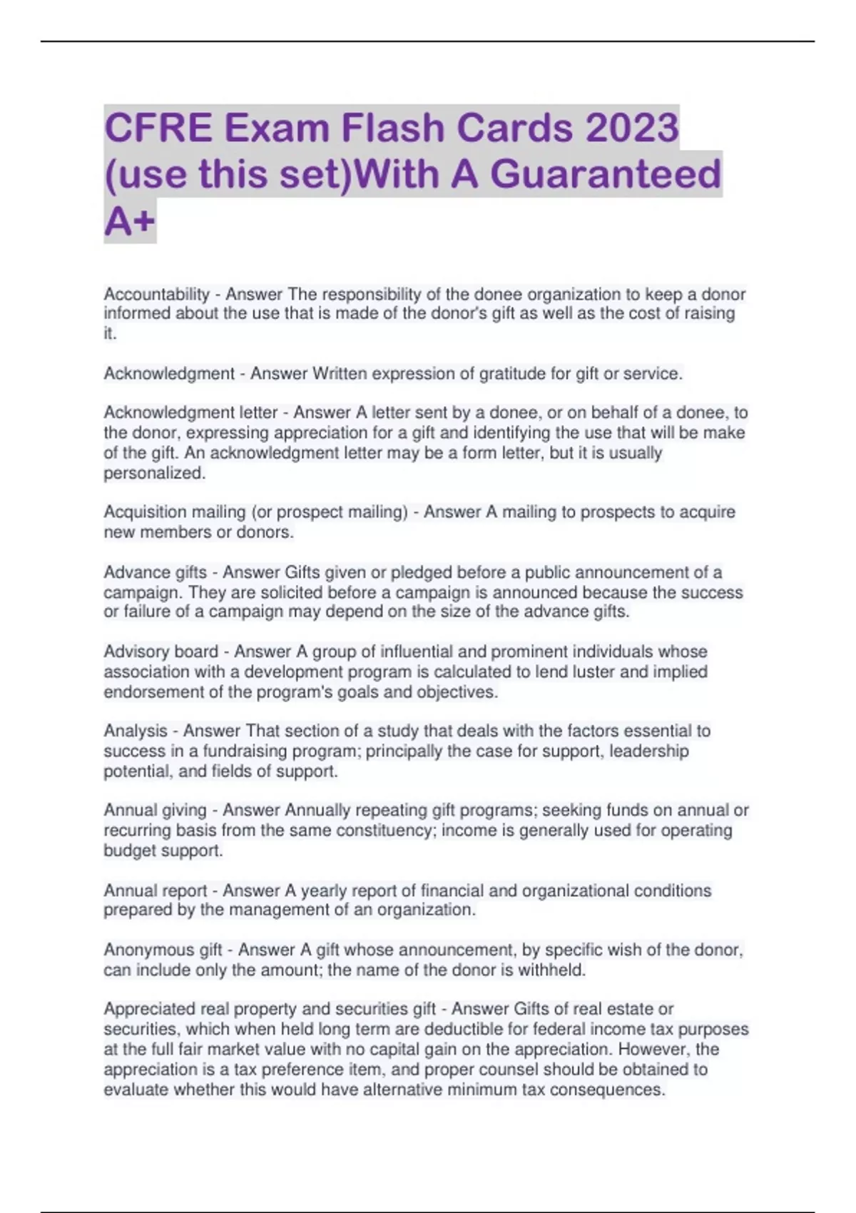 CFRE Exam Flash Cards 2023 (use this set)With A Guaranteed A+