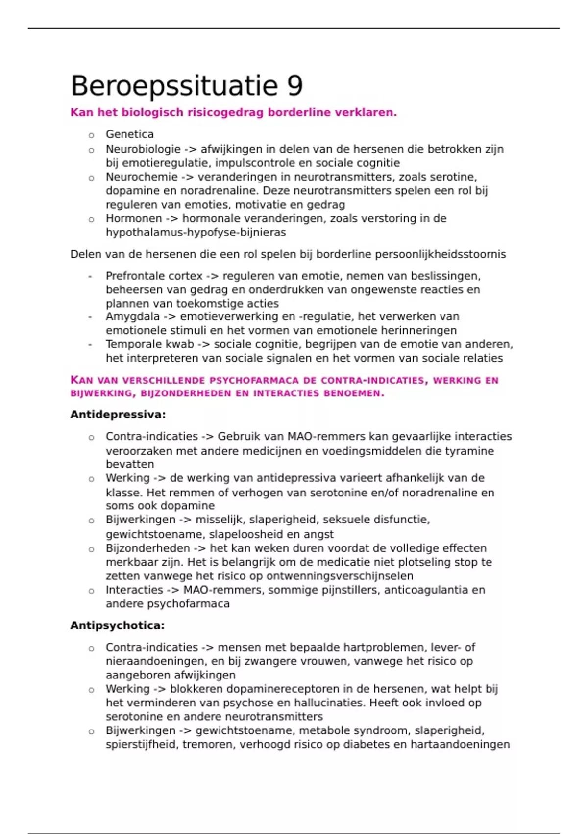 o Werking -> de werking van antidepressiva varieert afhankelijk van de