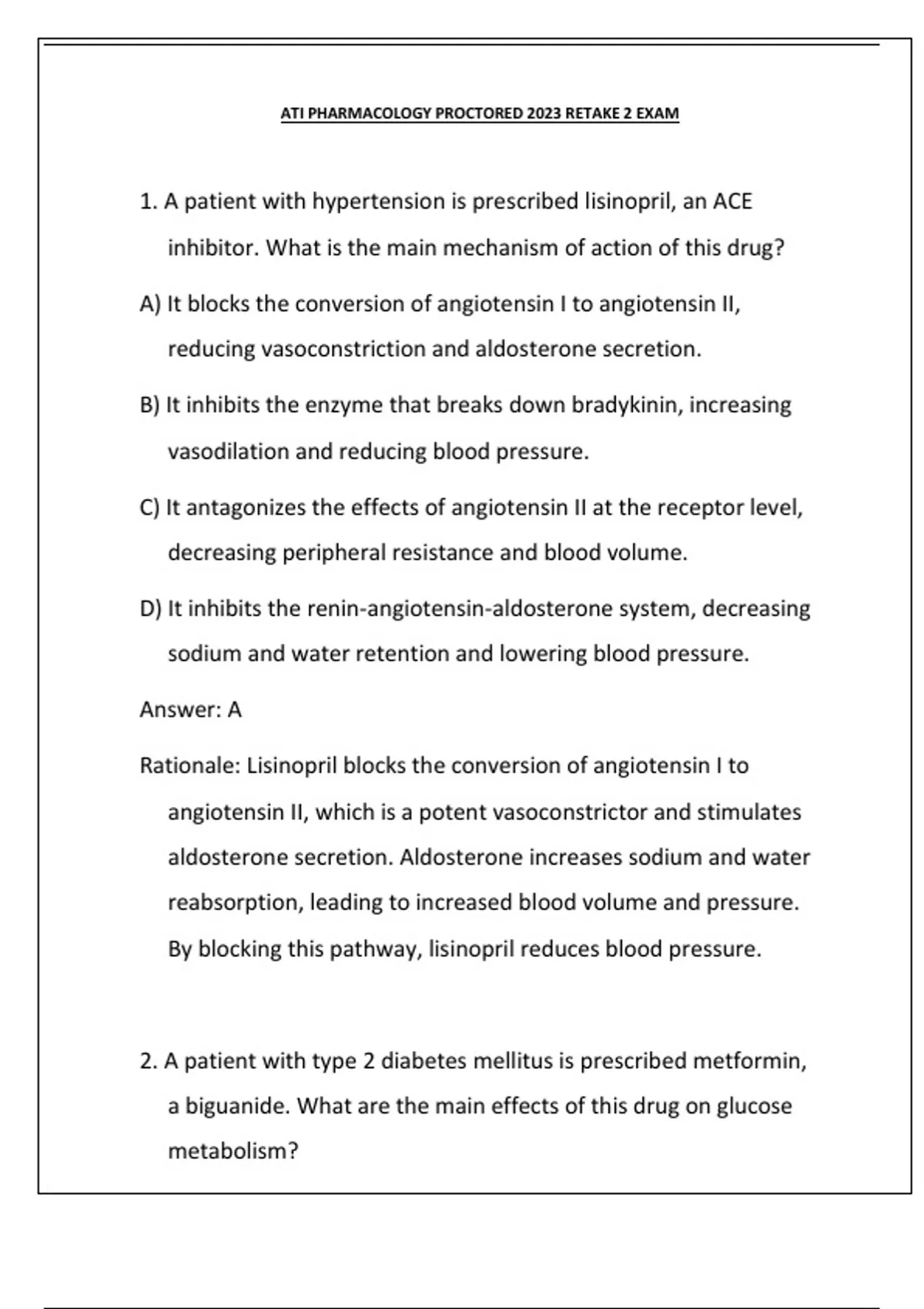 ATI Pharmacology Proctored 2023 Retake 2 Exam