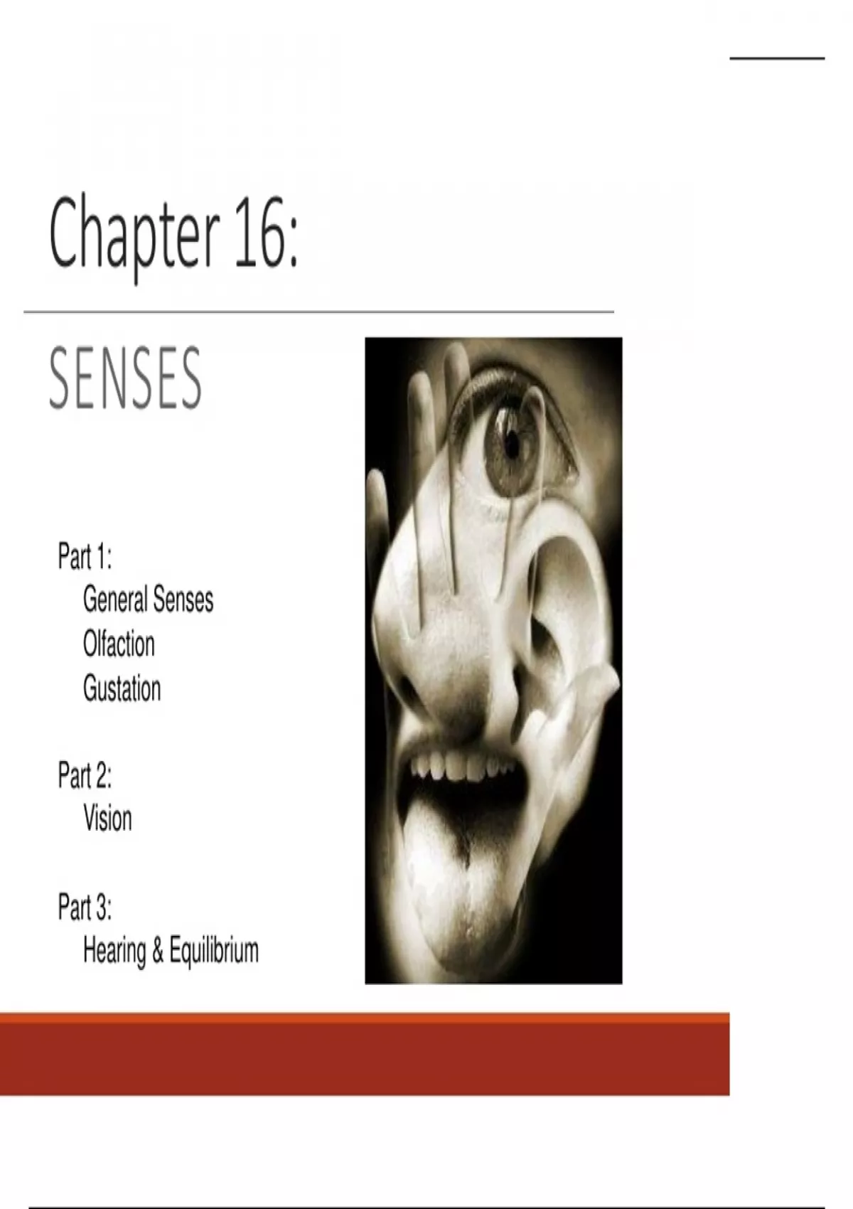General senses, olfaction and gestation. All of Your vision senses. Hearing and equilibrium