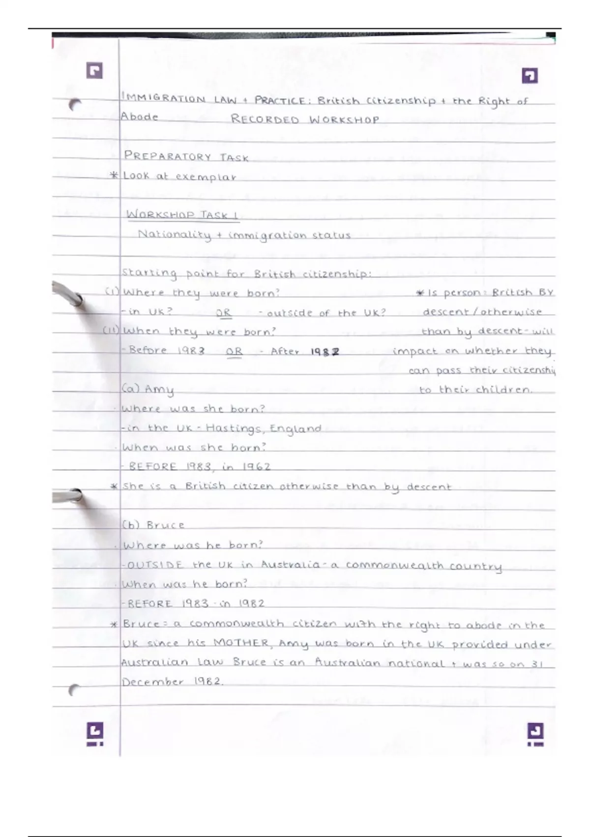 Summary Workshop 1 Immigration law
