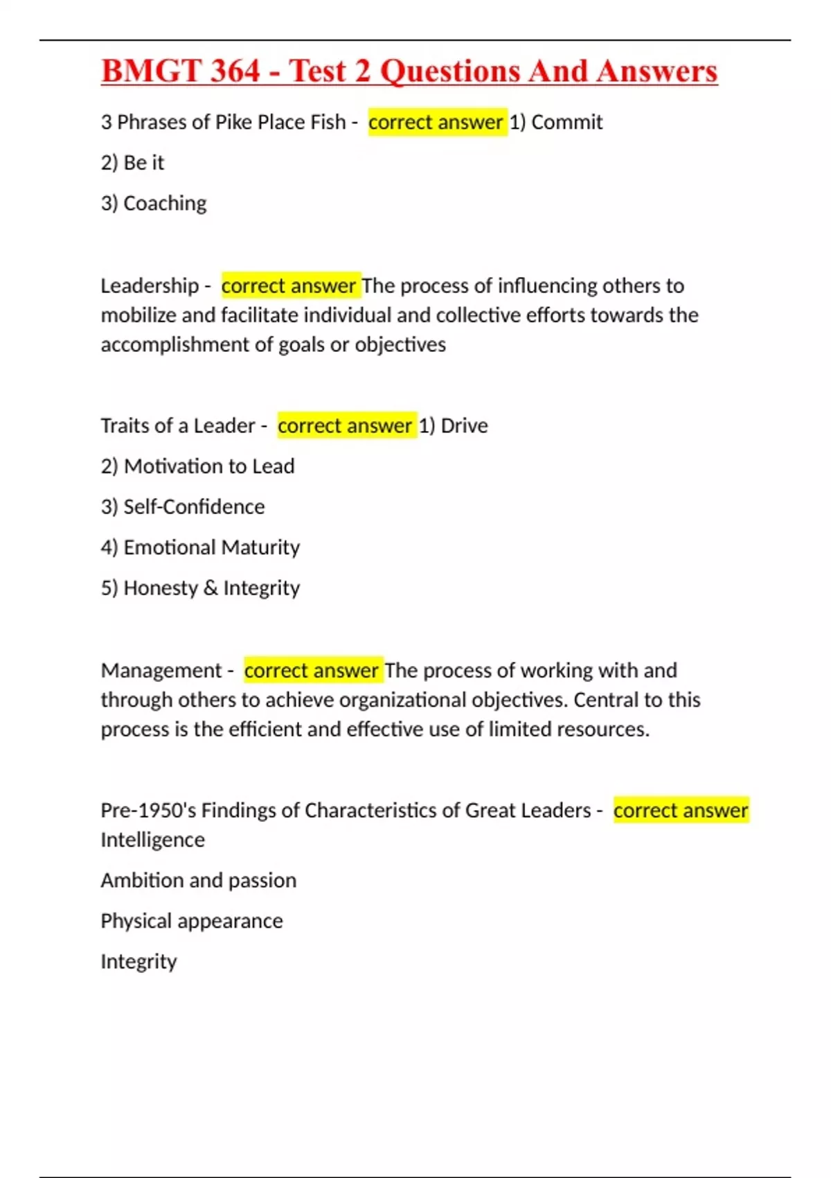 BMGT 364 - Test 2 Questions And Answers