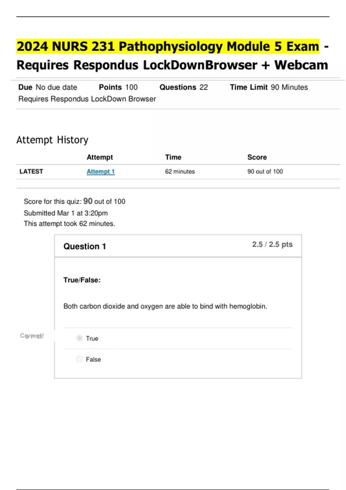 NURS 231 Pathophysiology Module 5 Exam 2024( Questions and Answers(A+ GRADED Verified )