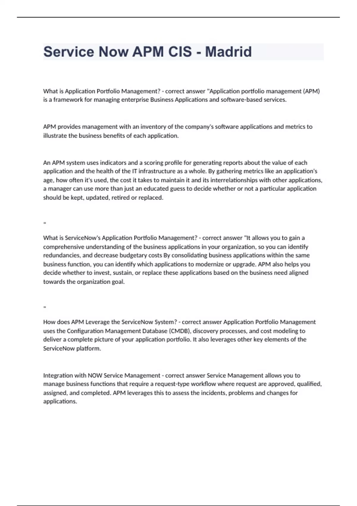 ServiceNow APM CIS - Madrid Question and answers rated A+ 2023/2024