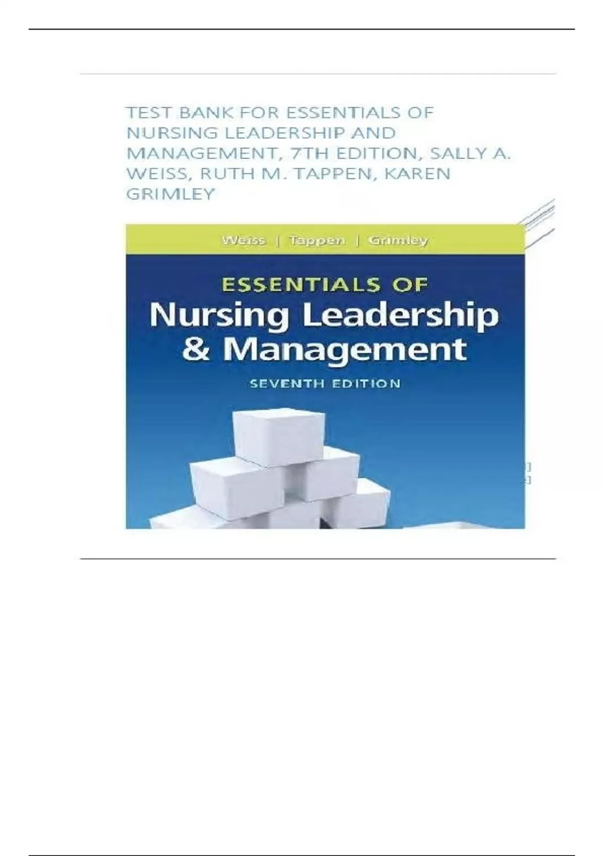 Test Bank for Essentials of Nursing Leadership and Management 7th Edition Weiss