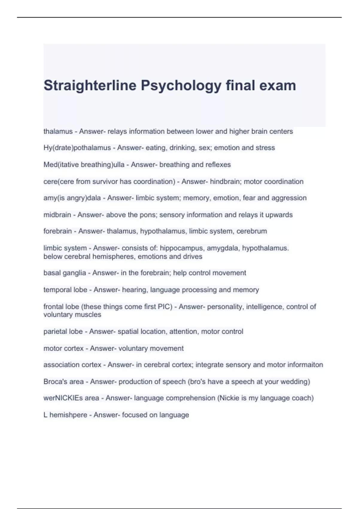 Straighterline Psychology final exam
