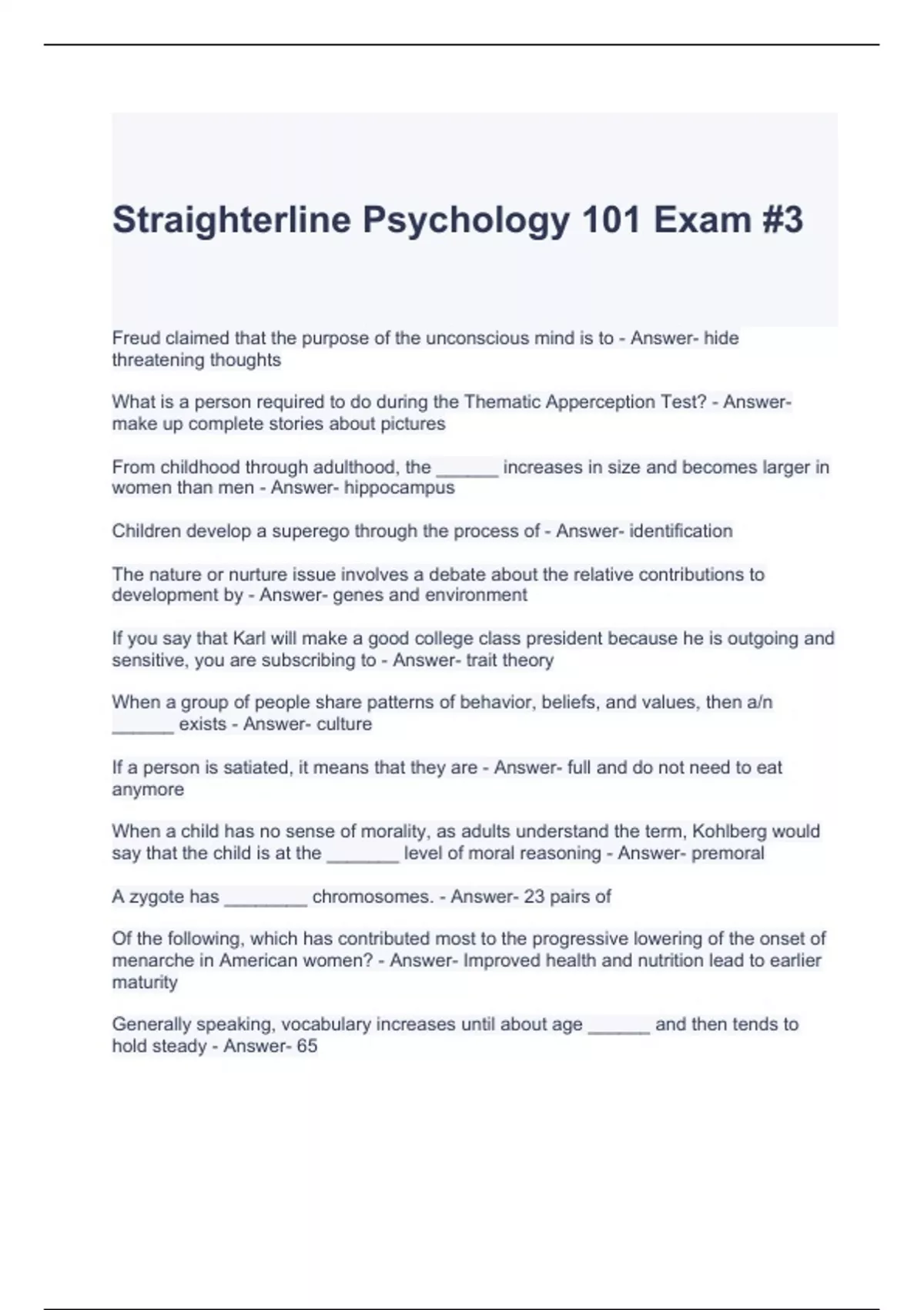Straighterline Psychology 101 Exam #3 Questions and Answers