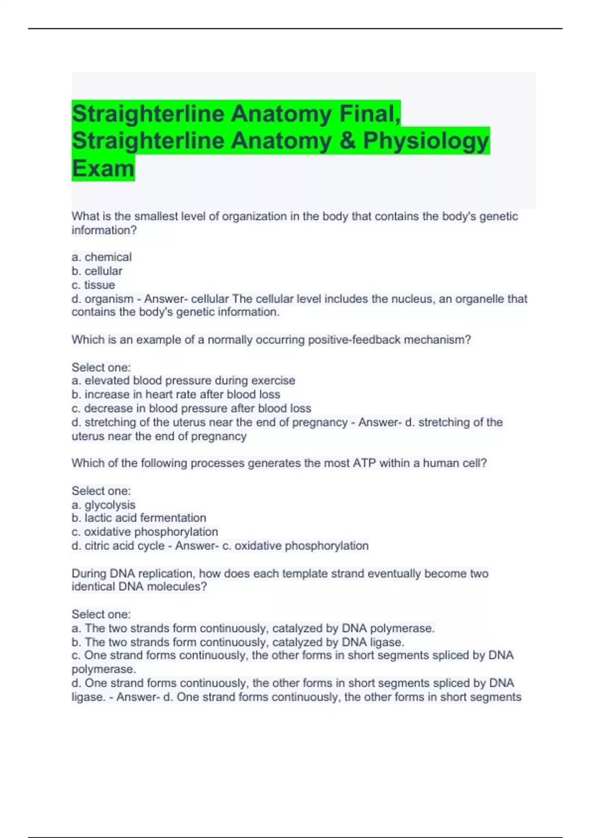 Straighterline Anatomy Final, Straighterline Anatomy & Physiology Exam