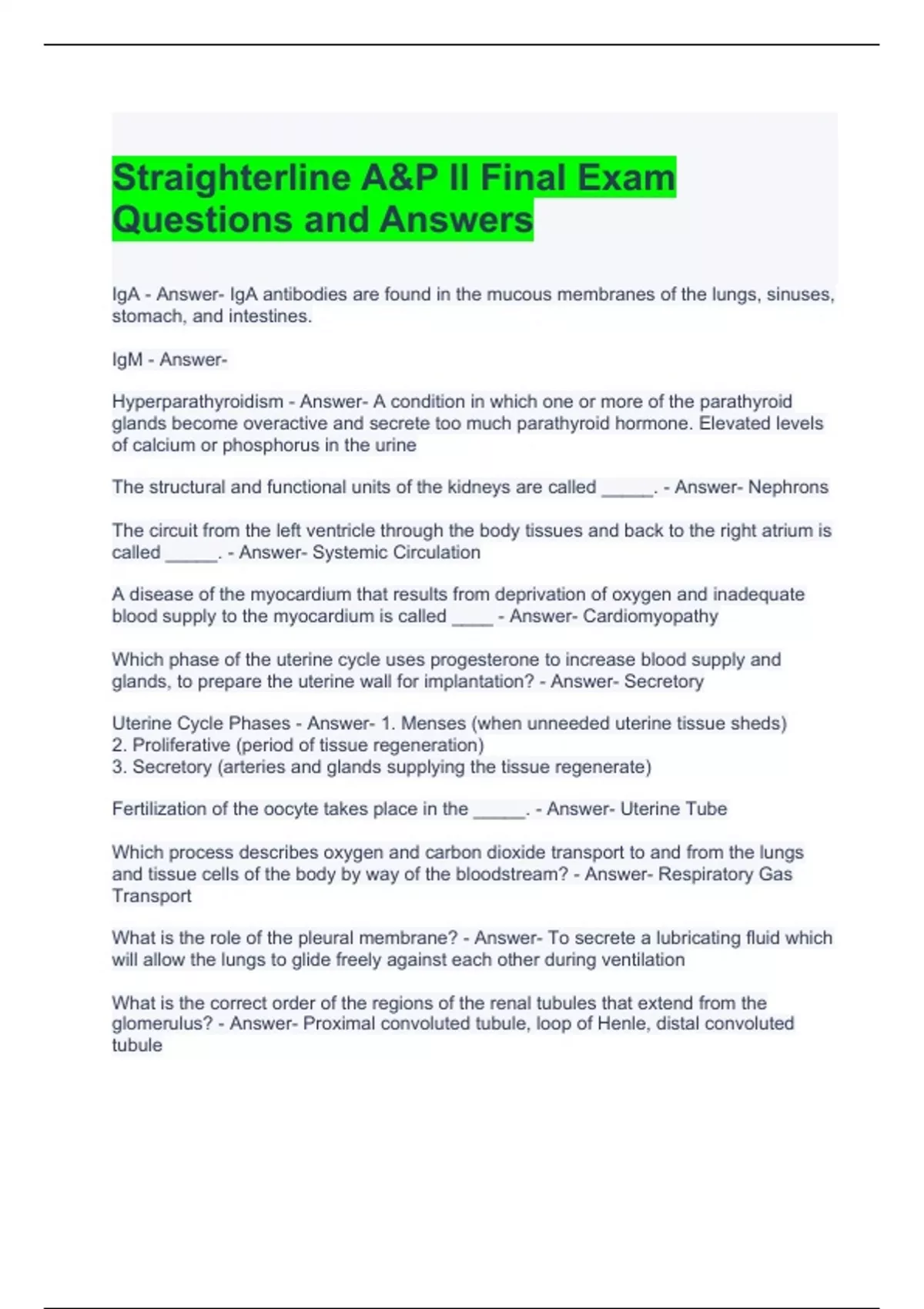 Straighterline A&P II Final Exam Questions and Answers