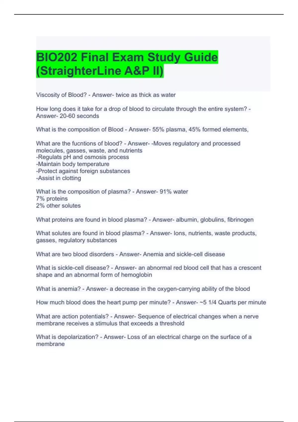 BIO202 Final Exam Study Guide (StraighterLine A&P II)