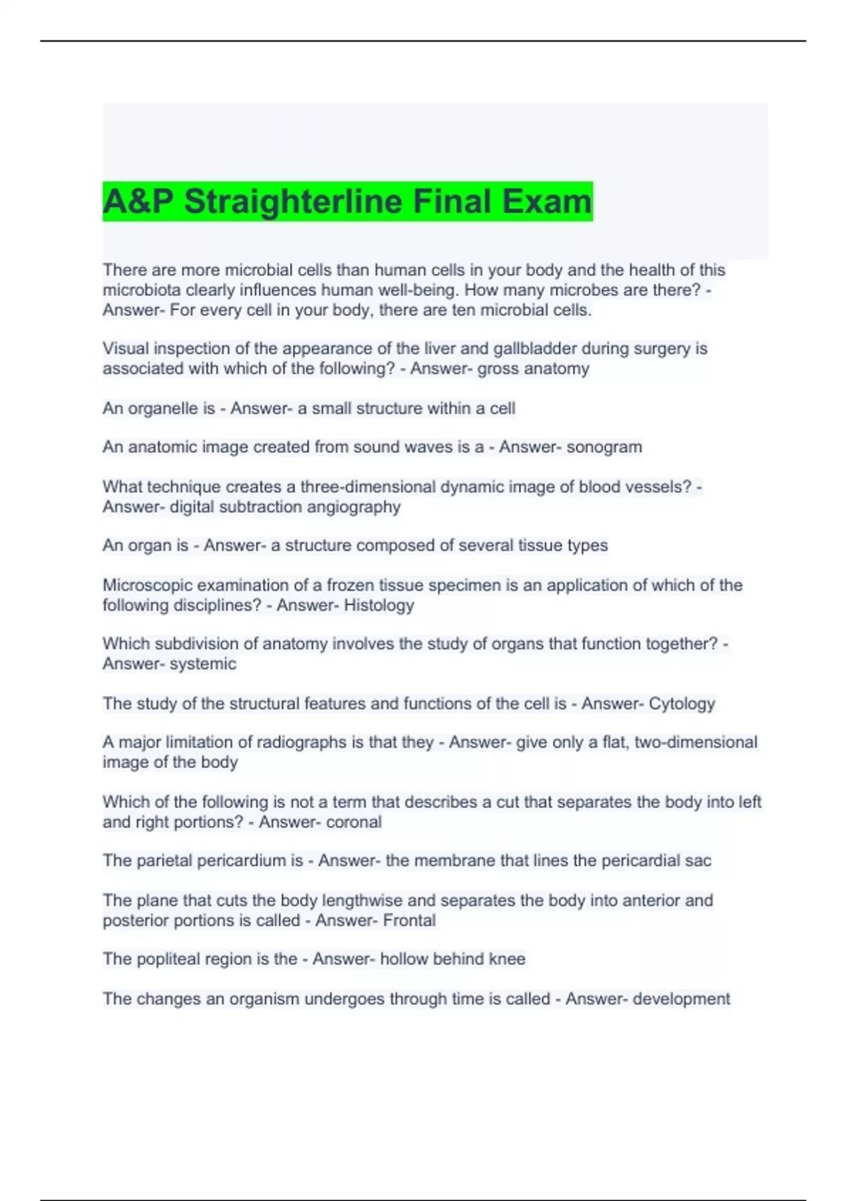 A&P Straighterline Final Exam