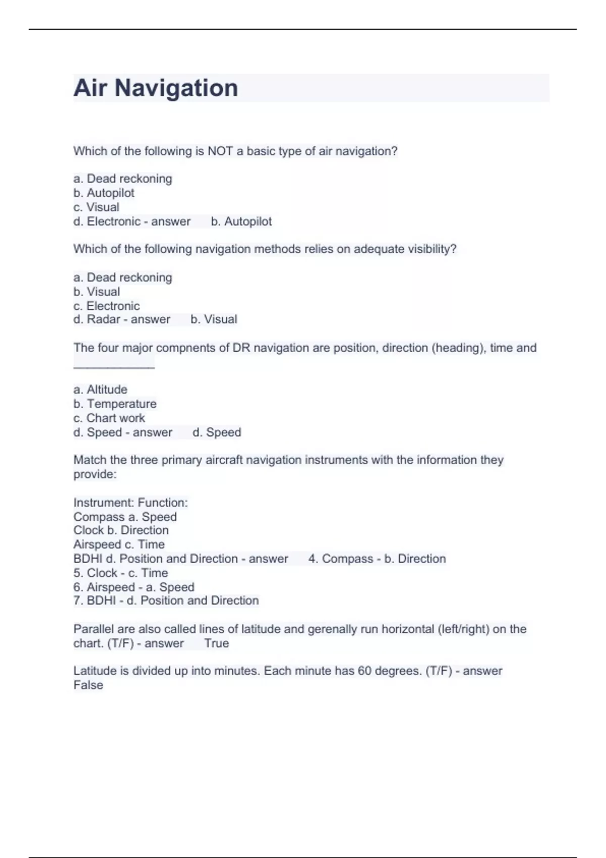 Exam of 3 pages for the course Air methods at Air methods (Air Navigation)