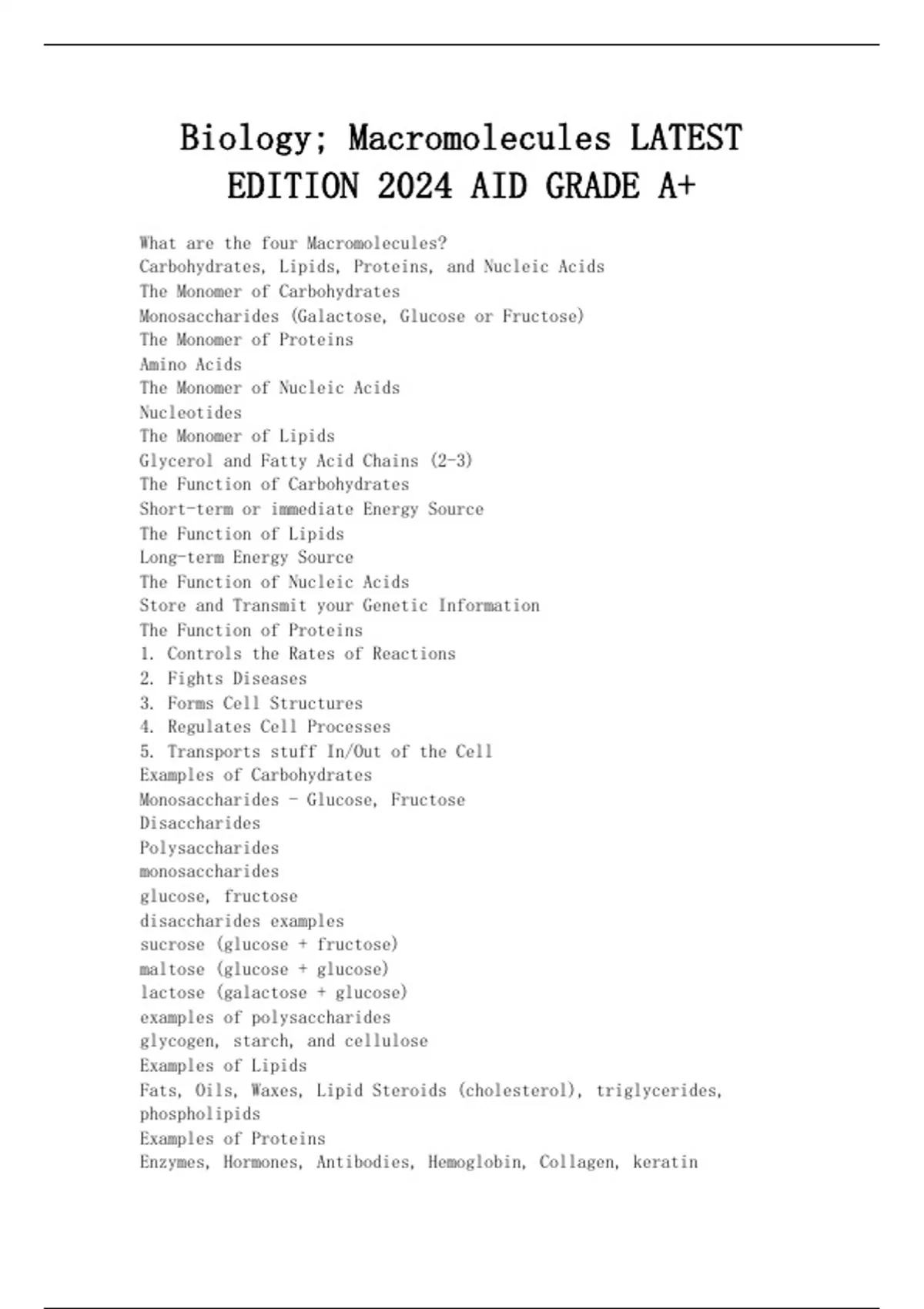 Biology; Macromolecules LATEST EDITION 2024 AID GRADE A+