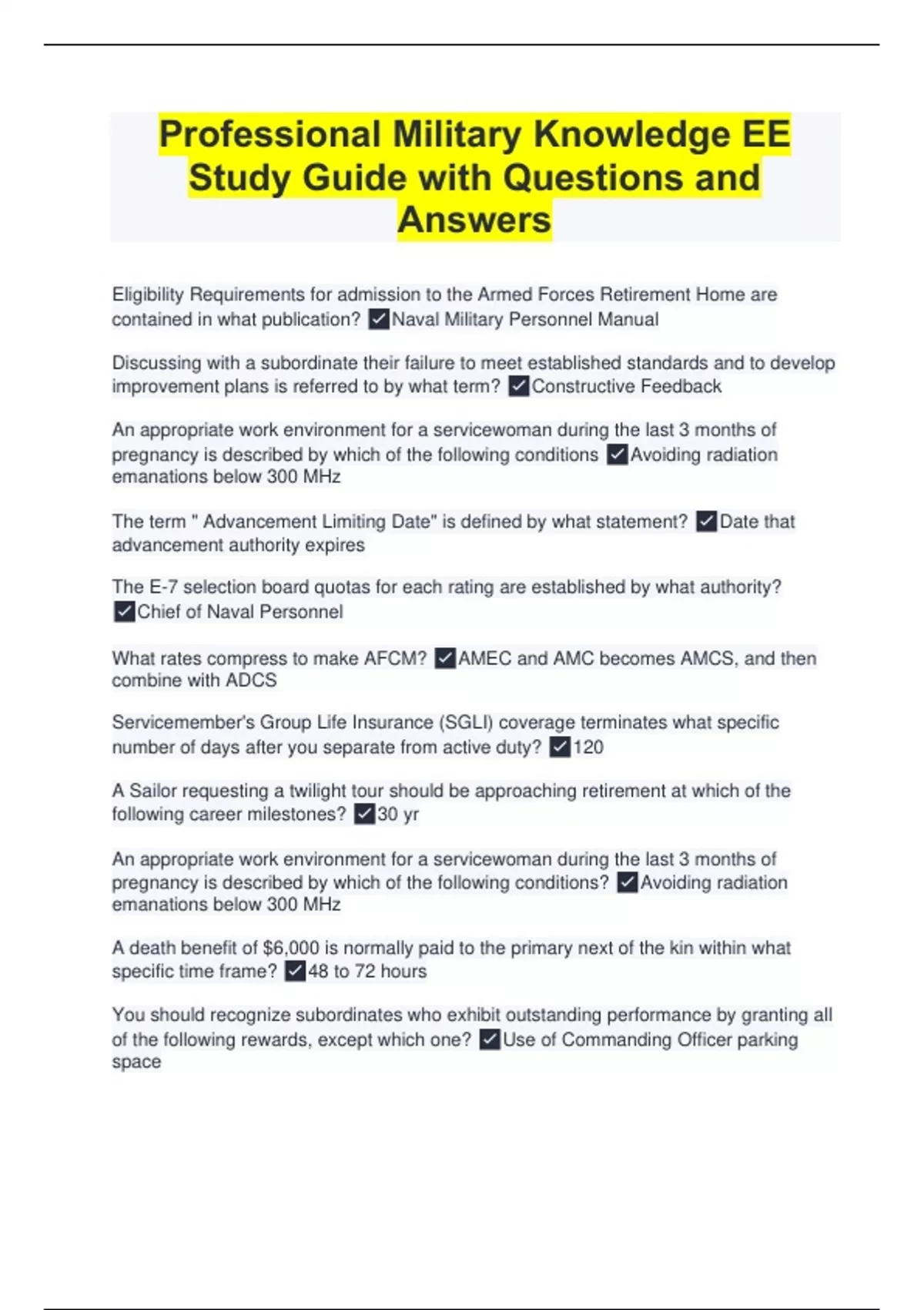 Professional Military Knowledge EE Study Guide with Questions and Answers