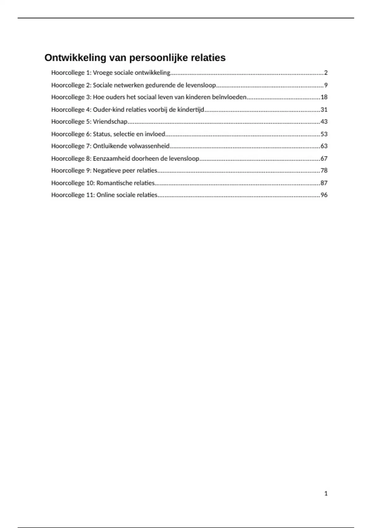 Hi medestudent! Ben jij nog op zoek naar een goede samenvatting voor de cursus Ontwikkeling van persoonlijke relaties? Zoek dan niet verder! In deze samenvatting uit collegejaar 2023/2024 is alle stof van de cursus Ontwikkeling van persoonlijke relaties in één document te vinden. Dit zorgt ervoor dat jij er zeker van kan zijn dat je na het lezen van deze samenvatting alle stof hebt doorgenomen. In principe komen alle afbeeldingen die worden gebruikt in deze samenvatting uit het boek of de collegeslides. Als dit niet het geval is staat er een linkje bij, zodat je de afbeelding zelf nog kan opzoeken.