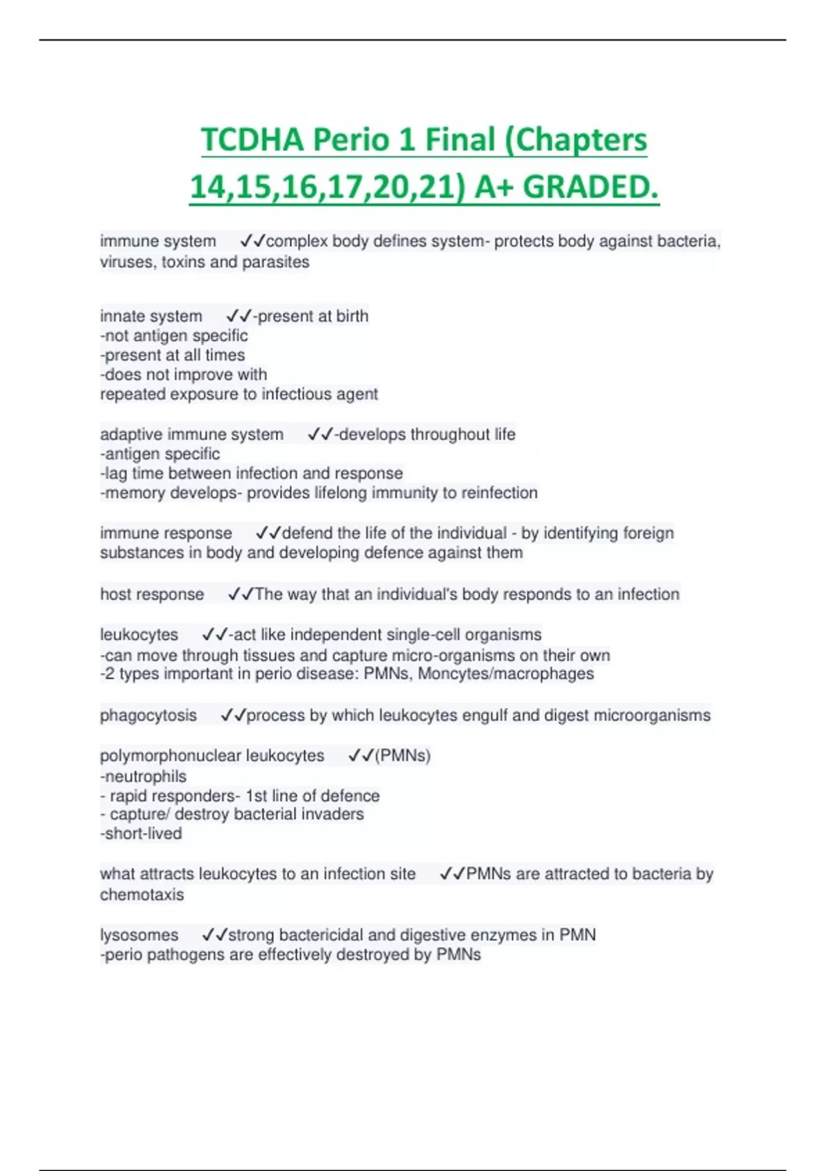 TCDHA Perio 1 Final (Chapters 14,15,16,17,20,21) A+ GRADED.