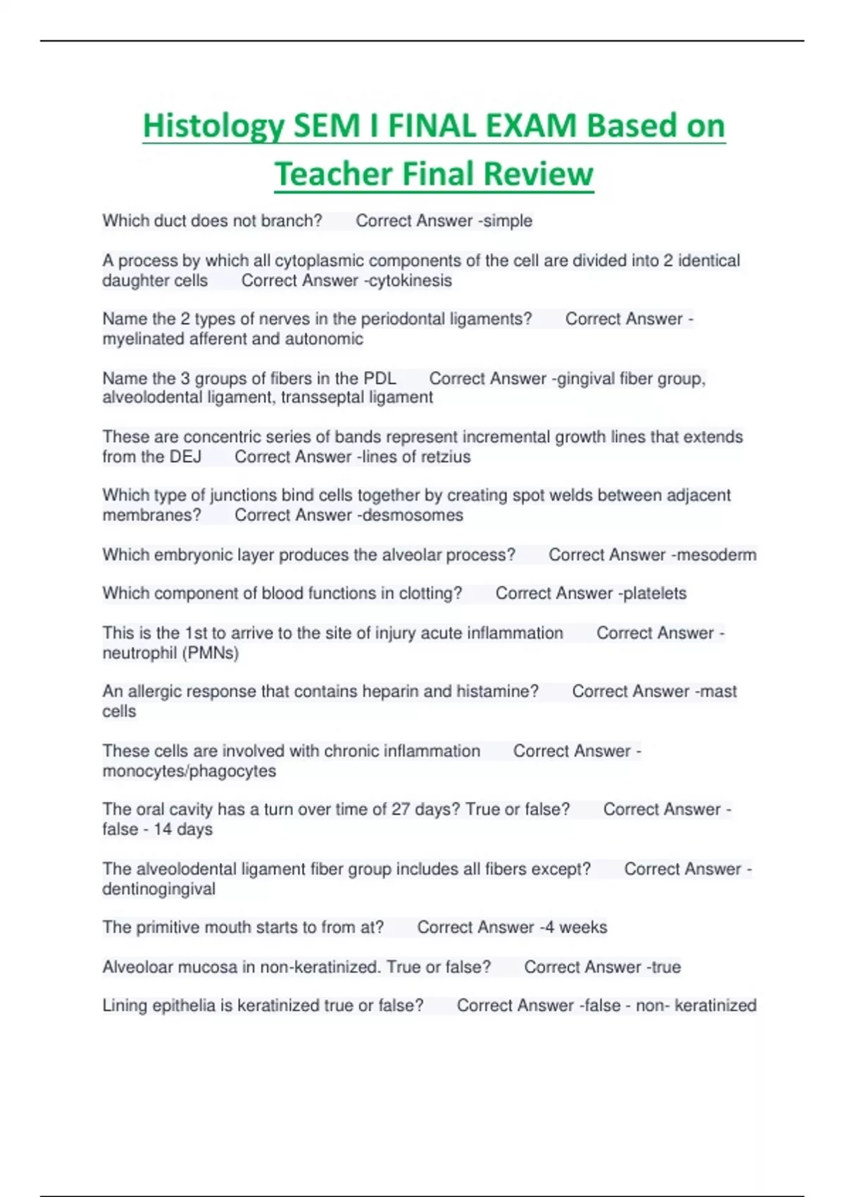 Histology SEM I FINAL EXAM Based on Teacher Final Review|RATED A.