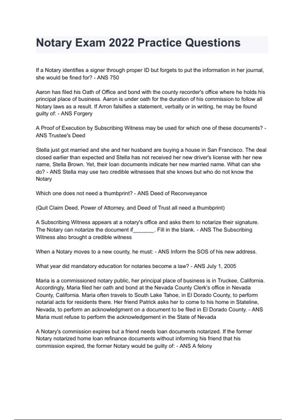 Notary Exam 2024 Practice Questions With Completed Solutions Graded A+.