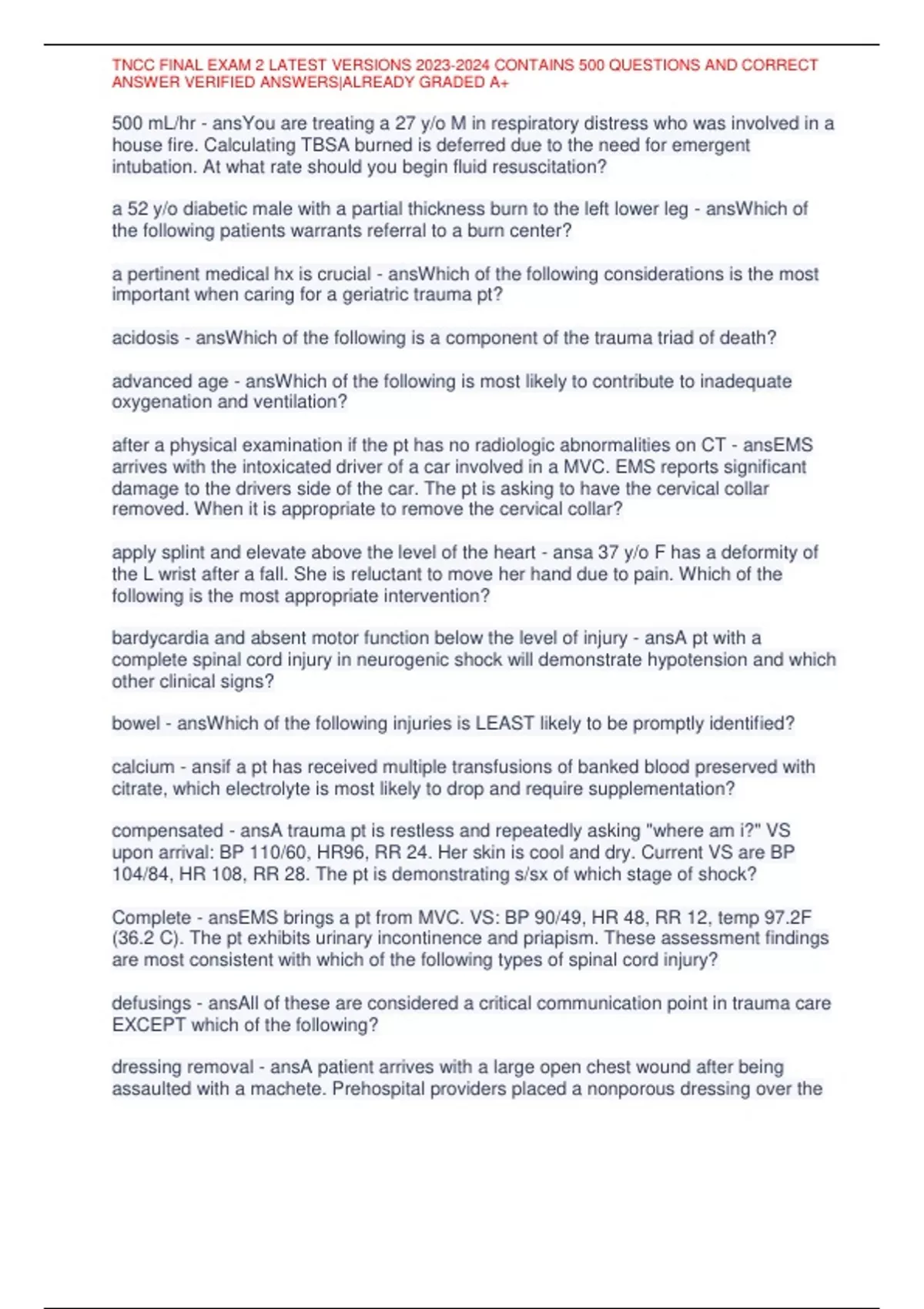 TNCC FINAL EXAM 2 LATEST VERSIONS CONTAINS 500 QUESTIONS AND CORRECT ANSWER VERIFIED ANSWERS ALREADY GRADED A+.pdf