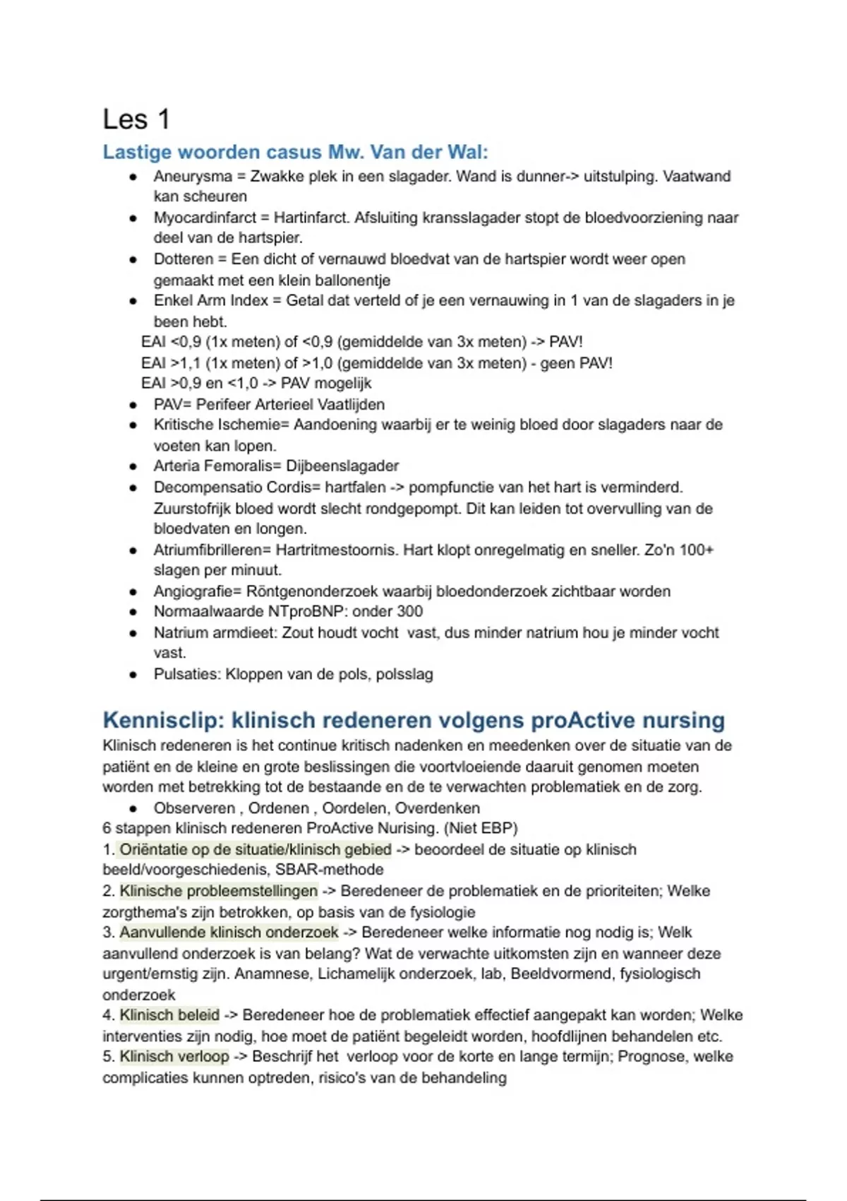 Elke les is samengevat aan de hand van de leerdoelen van klinisch redeneren, leerpakket 8.