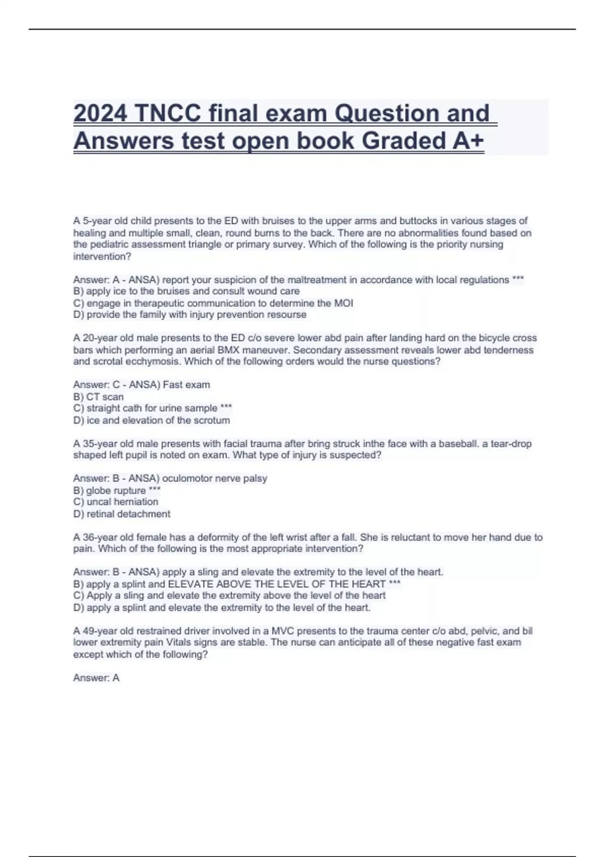 2024 TNCC final exam Question and Answers test open book Graded A+