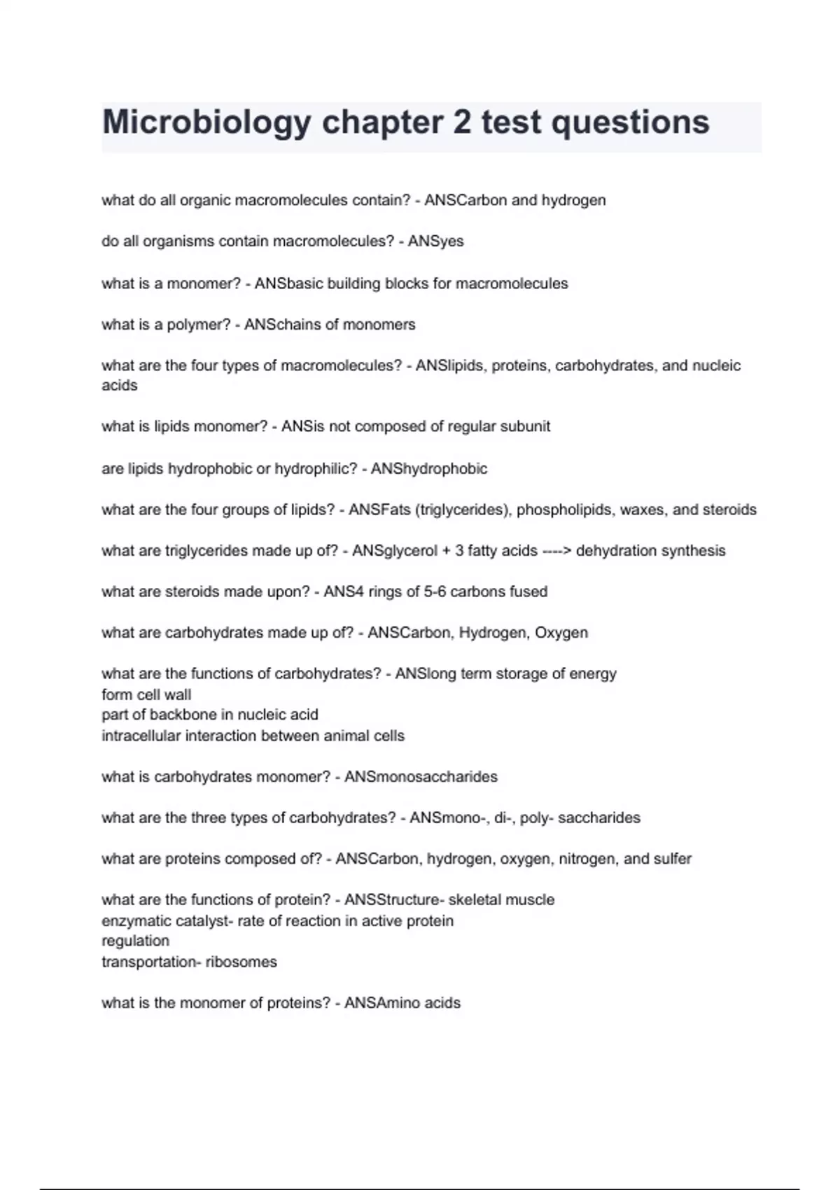 Microbiology chapter 2 test questions 2024/2025 ( 100% verified