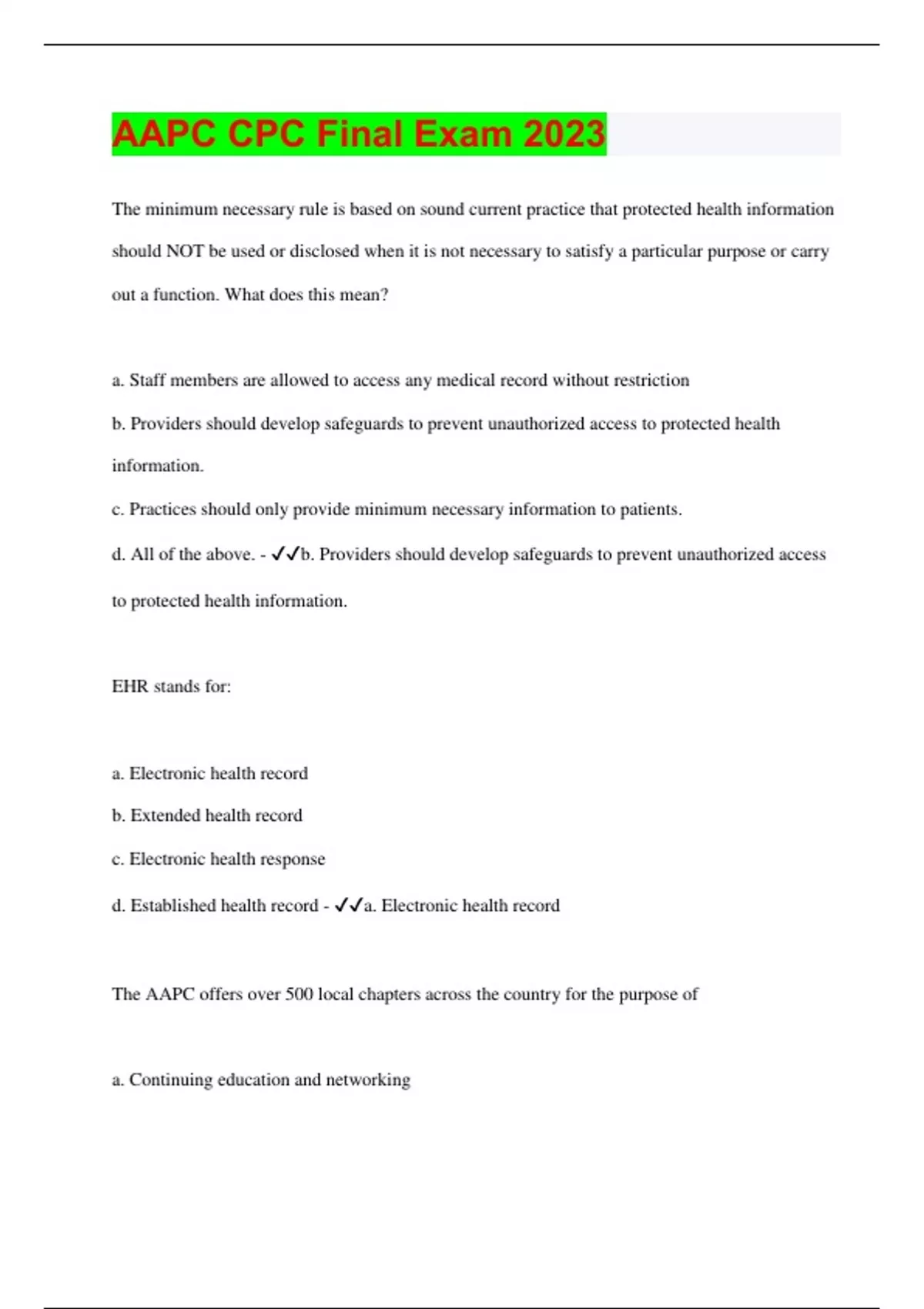 AAPC CPC Final Exam 2023 Questions with 100% Correct Answers | Latest Update| Verified