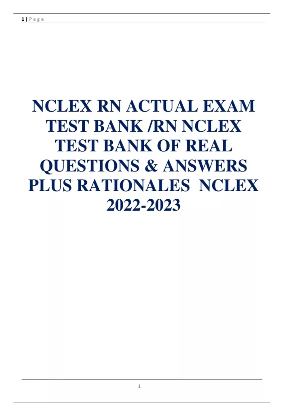NCLEX RN ACTUAL EXAM TEST BANK /RN NCLEX TEST BANK OF REAL QUESTIONS & ANSWERS PLUS RATIONALES NCLEX