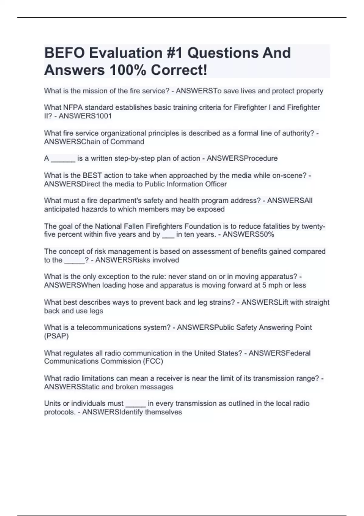 BEFO Evaluation #1 Questions And Answers 100% Correct!