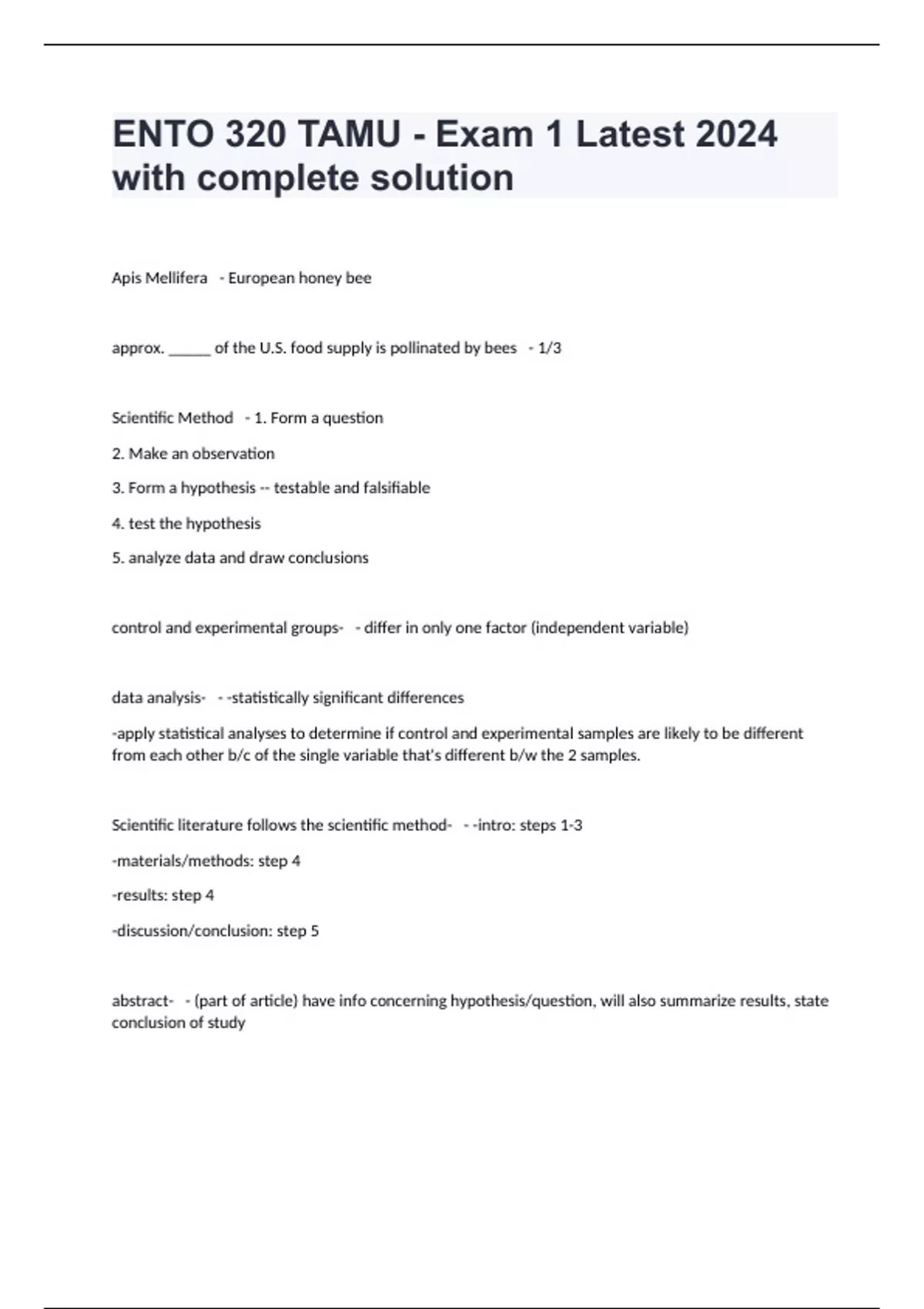 ENTO 320 TAMU - Exam 1 Latest 2024 with complete solution