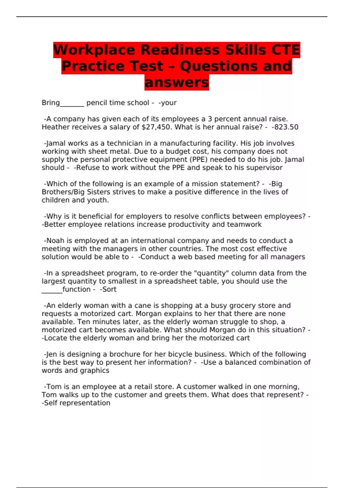 Workplace Readiness Skills CTE Practice Test – Questions and answers